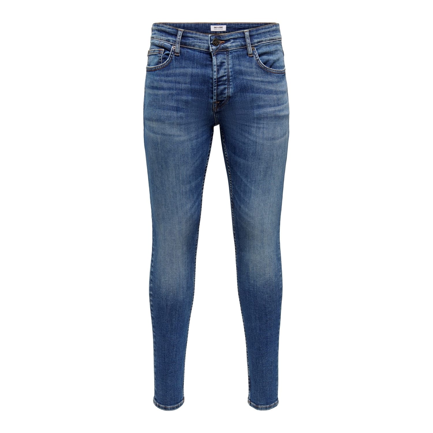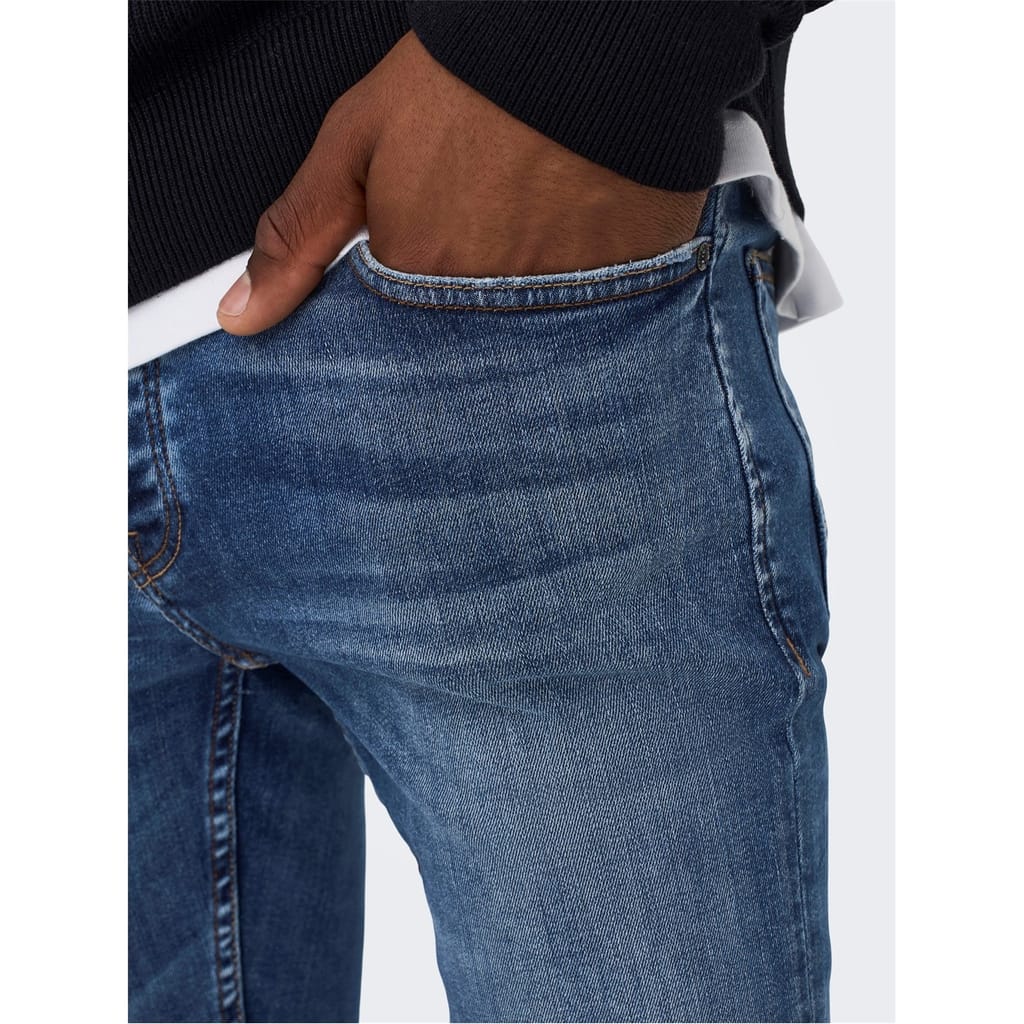 Discover the Only & Sons jeans, featuring a sleek skinny fit. These jeans come with a practical zip fly closure and are designed with a classic five-pocket style, offering both functionality and style. Perfect for those who appreciate a modern, streamlined look. -