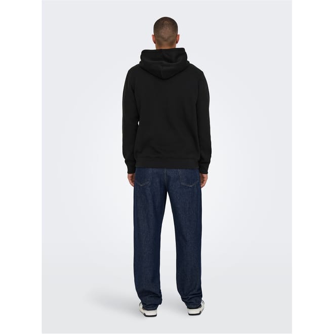 This Only & Sons hoodie sweatshirt is a versatile top featuring a hood with a drawstring. Designed in a regular fit, it includes long sleeves with ribbed cuffs. The kangaroo pocket adds a practical touch, making it ideal for casual wear. Crafted with attention to detail, this sweatshirt combines comfort and style effortlessly. -