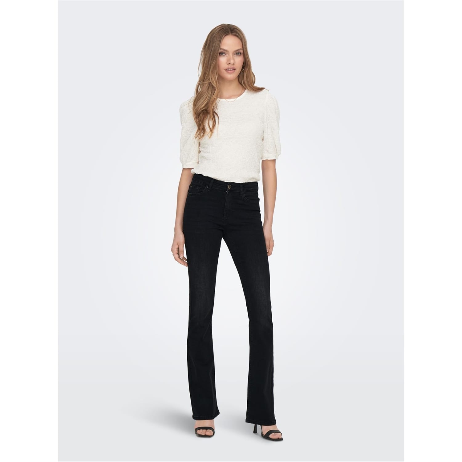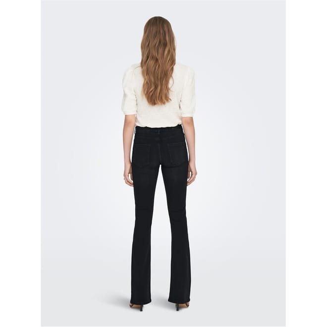 Discover the Only wide-leg jeans, featuring a stylish flare leg cut and regular fit. These jeans come with a convenient zip fly and button closure. The design is completed with a subtle logo embellishment, adding a touch of brand identity to your wardrobe. -