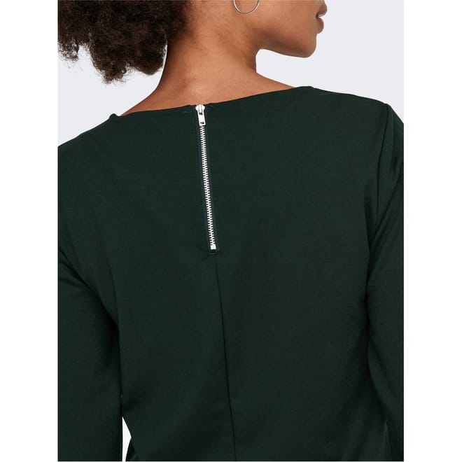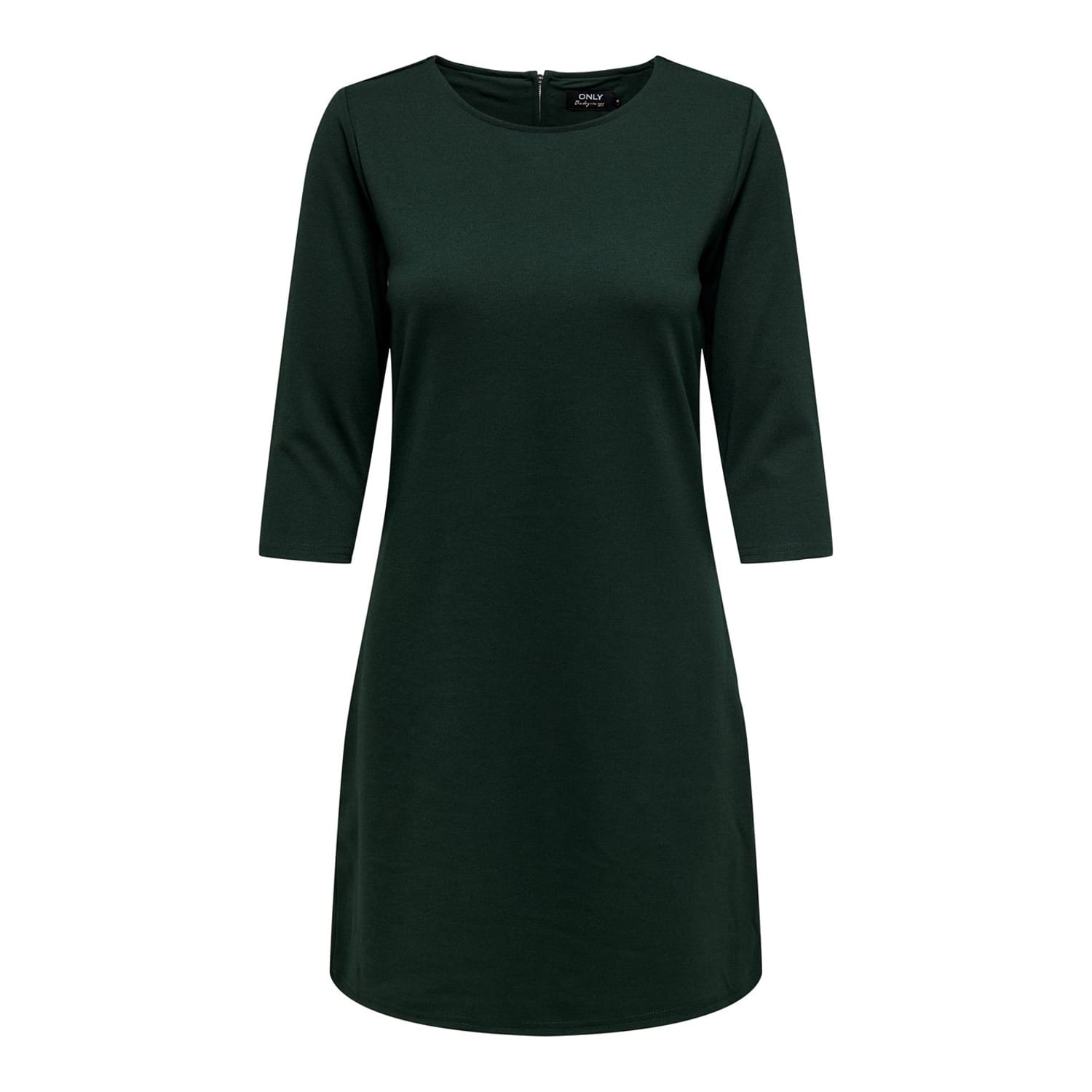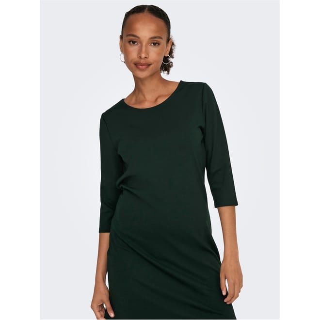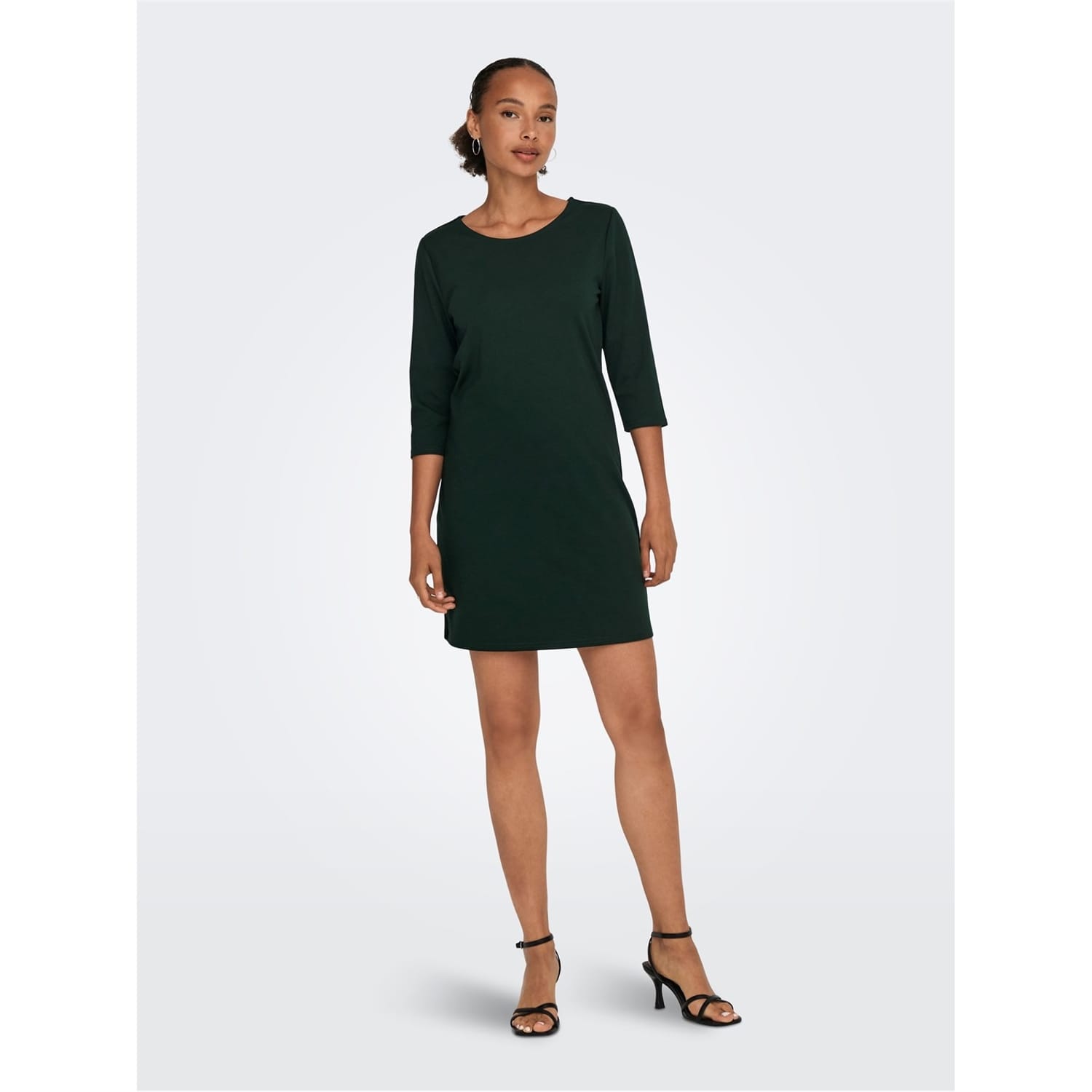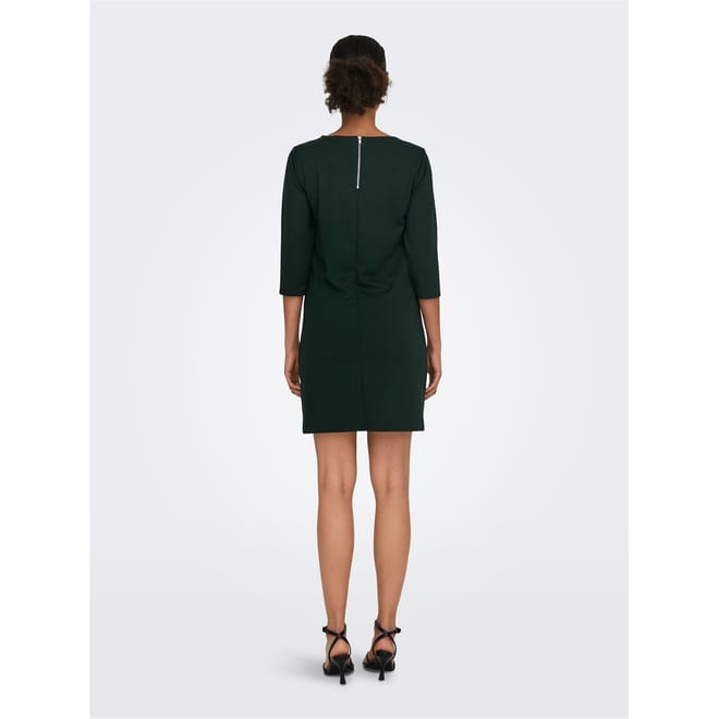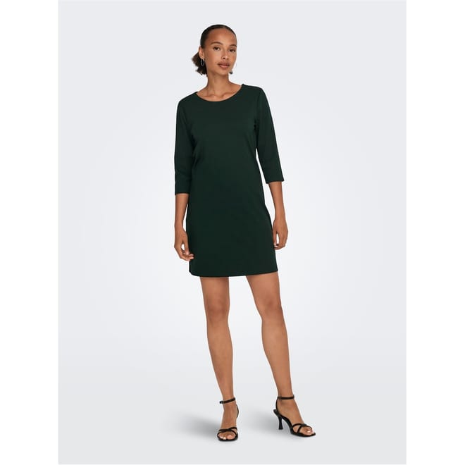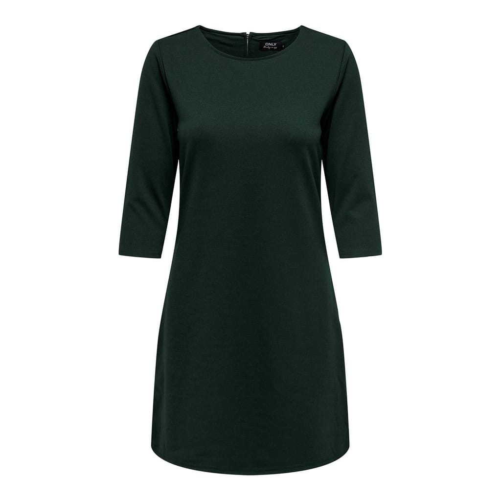 This Only mini dress features a classic crew neck and a regular fit, offering a timeless A-line silhouette. The solid pattern and straight hemline add to its elegant simplicity. Designed with three-quarter sleeves and a convenient zipper closure, this dress is a versatile addition to any wardrobe. -