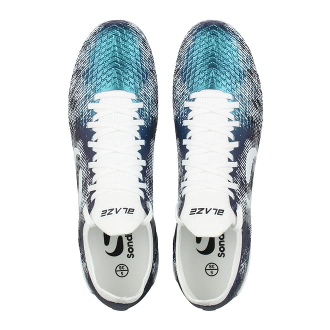 These Sondico Blaze football boots have been crafted with a synthetic leather upper with a quilted effect and embossed details to help enhance ball control, while the knitted tongue and ankle sock delivers enhanced comfort and works with the lacing to offer a snug fit. The boots feature moulded studs to deliver superior traction on firm ground and the subtle Sondico branding completes the design. -