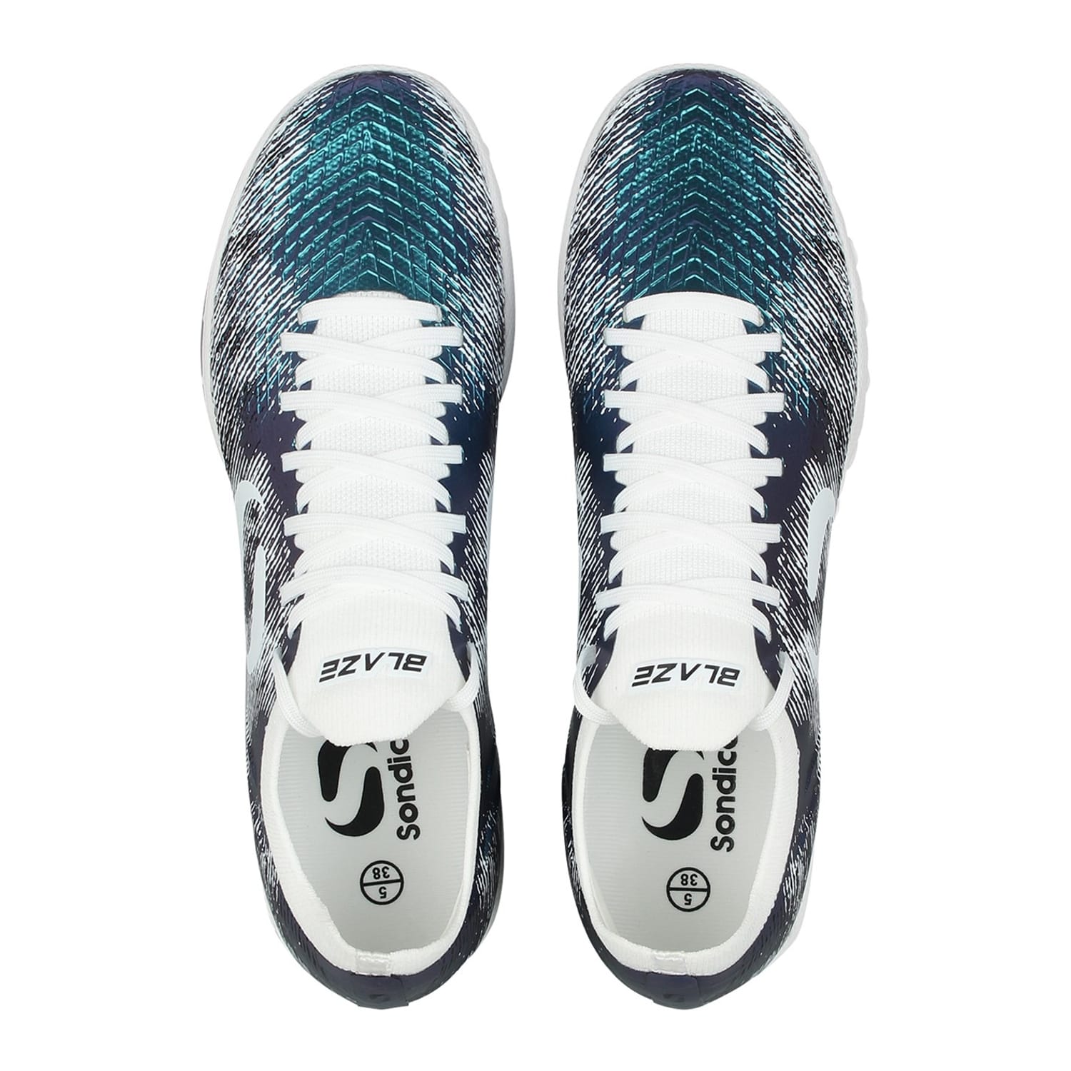 These Sondico Blaze Astro Turf Trainers have been crafted with a knitted tongue and ankle for a snug and comfortable feel, while the rubber outsole with moulded lugs delivers the traction needed for you to get the most out of your game. The boots have a quilted upper effect with embossed detailing to help improve control and accuracy, whereas the subtle Sondico branding completes the design. -