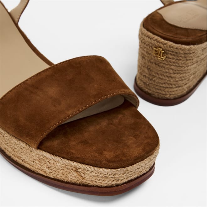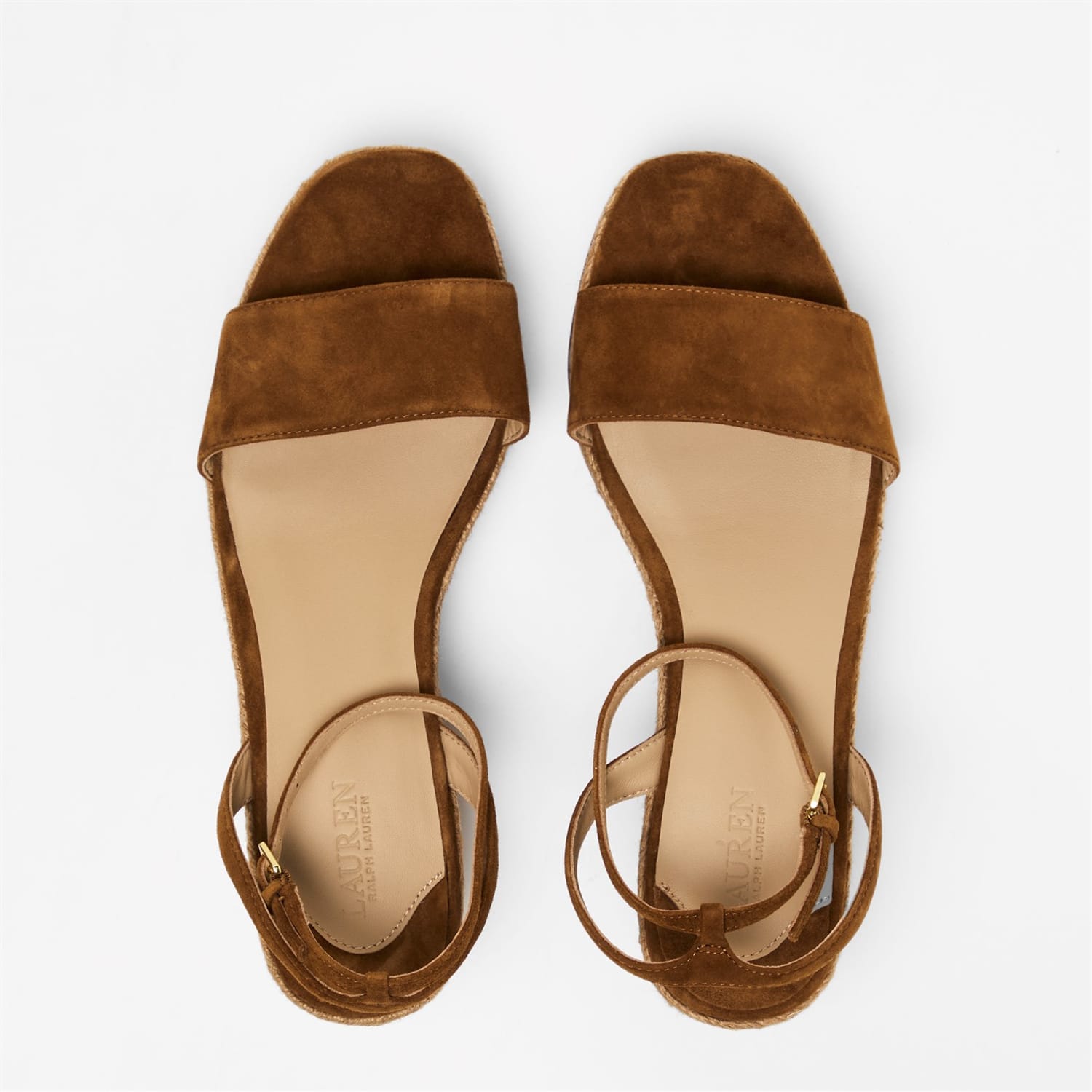 Step into summer in style with these elegant Leona Wedge Heels from Lauren by Ralph Lauren. Expertly crafted using a sumptuous suede for the upper, a luxurious leather for the lining to create a comfortable, breathable feel these shoes are sat upon a durable, rubber sole for long-lasting wear. Elegance becomes this pair with their 3.5cm wedge heel, chic open tie and ankle buckle fastening. Designed in a chic colourway these shoes would pair well with your favourite mini dress for an evening ensemble or a floaty maxi skirt for daytime dressing. Punctuated by the eye-catching brass LRL on the rear for a prestigious feel. -