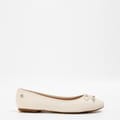 - Bow detailing across the toeboxes with metallic ferrules completes the look with elegance and glamour.