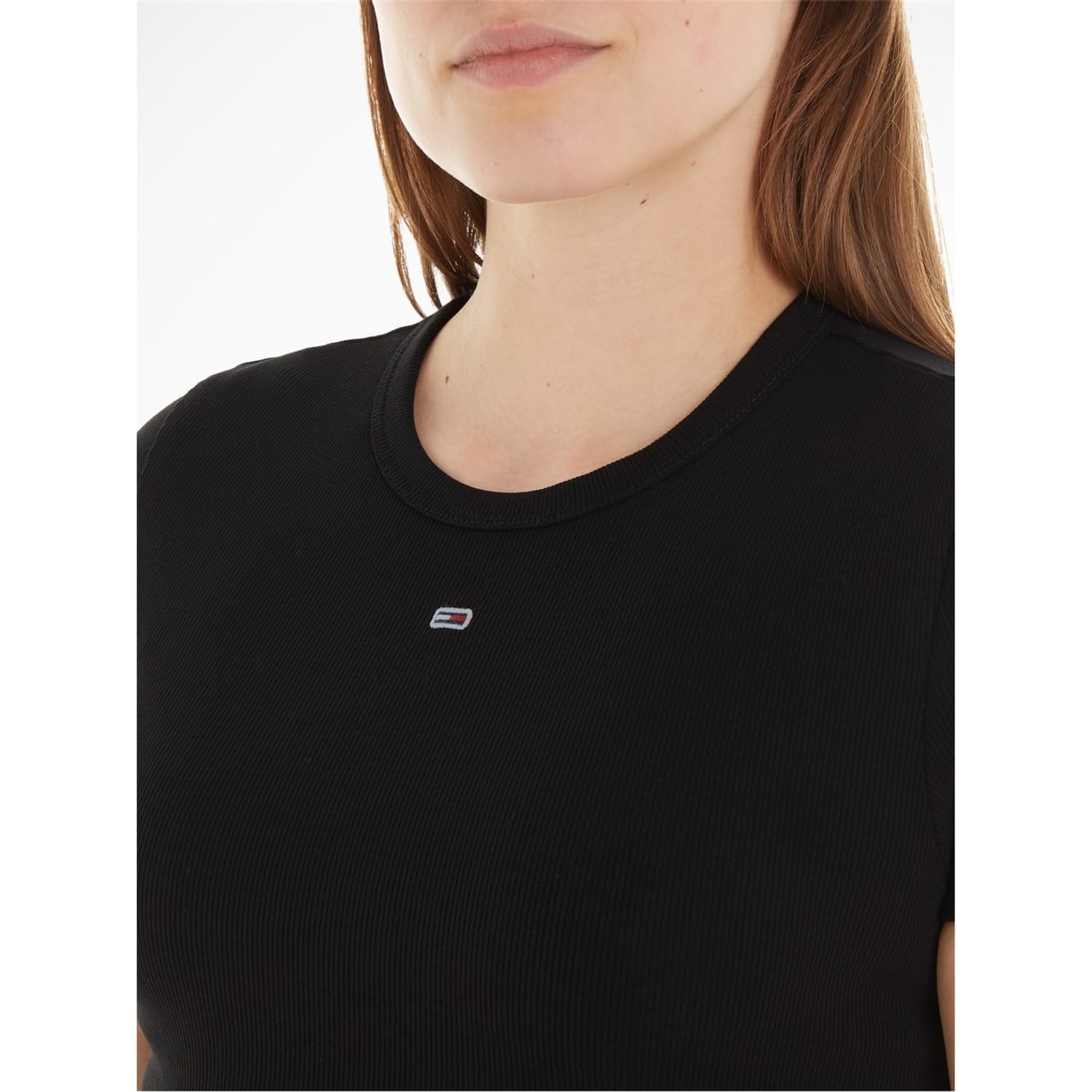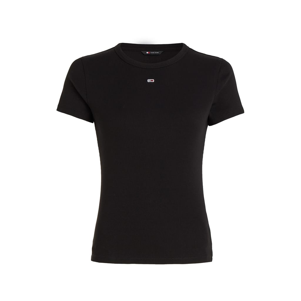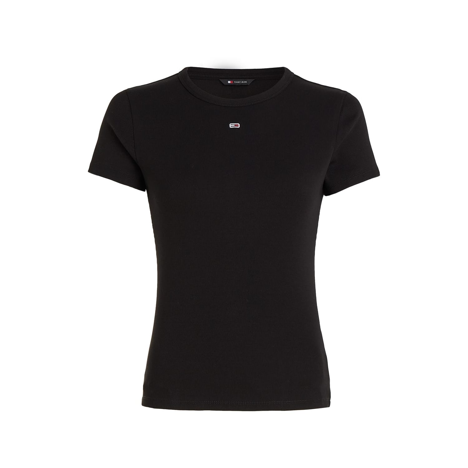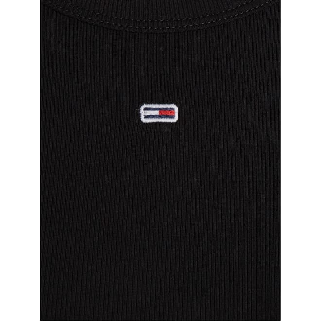 Discover the Tommy Jeans top, a staple from the Basic & Essentials collection. This slim fit piece features a ribbed pattern and a classic crew neck. The design is completed with a subtle logo embellishment, adding a touch of brand identity. Perfect for those who appreciate simplicity and style in their wardrobe. -