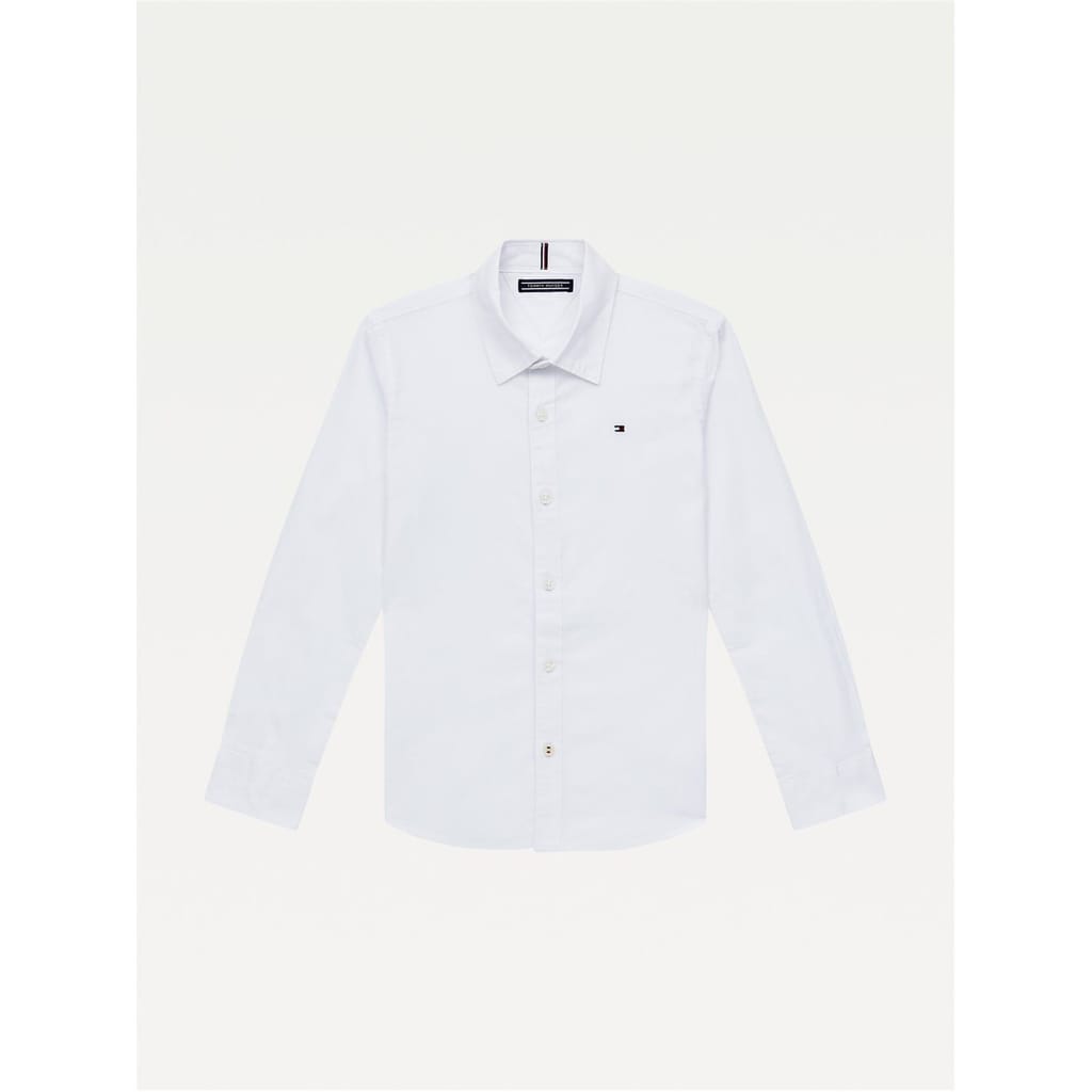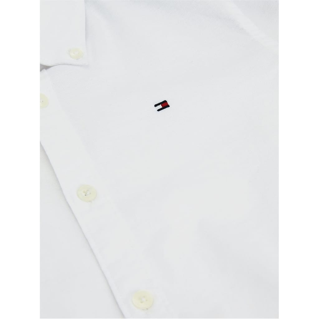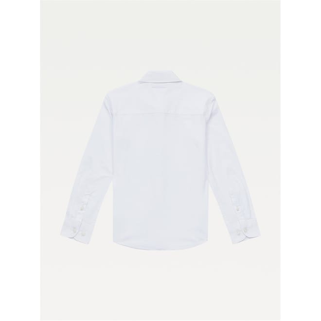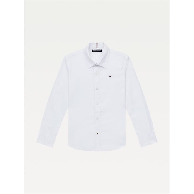 This Tommy Hilfiger dress shirt is a classic addition to any wardrobe. Featuring long sleeves and a regular fit, it offers comfort and style. The shirt collar and button closure provide a polished look, while the embroidered logo adds a touch of elegance. With stretch attributes and barrel cuffs, this shirt is perfect for all-day wear. -