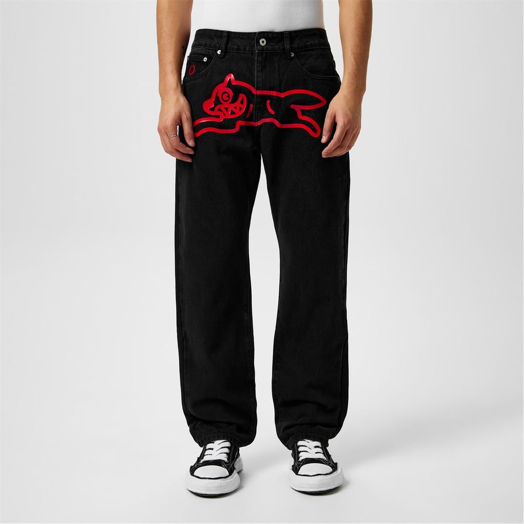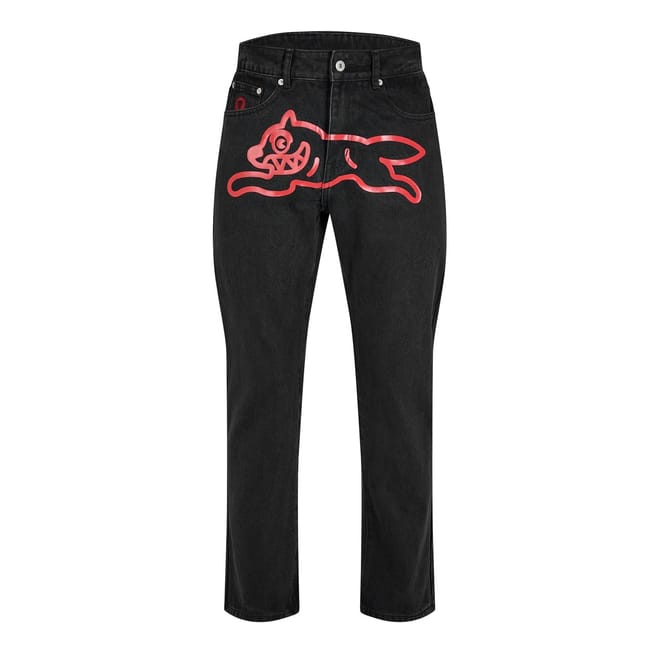 Discover the unique style of Icecream jeans, featuring a graphic print and embroidered logo embellishments. These slim fit jeans offer a comfortable zip fly and button closure, making them a standout addition to any wardrobe. -
