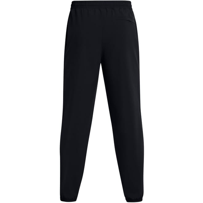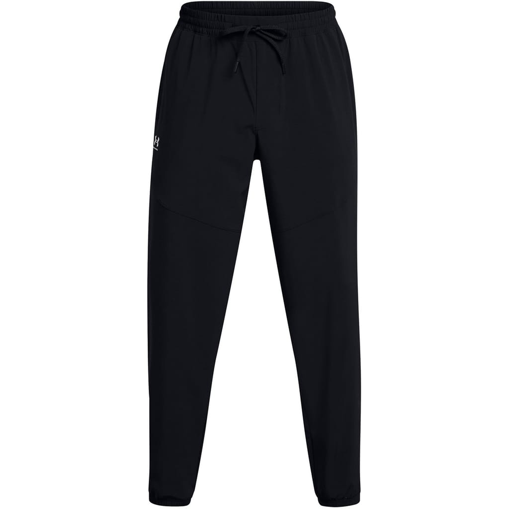 Under Armour athletic pants are designed for running enthusiasts. Crafted from woven performance fabric, these pants feature a drawstring closure and an elasticated waistband for a secure fit. Part of the activewear collection, they include practical pockets and a logo embellishment, ensuring both functionality and style during your workouts. -