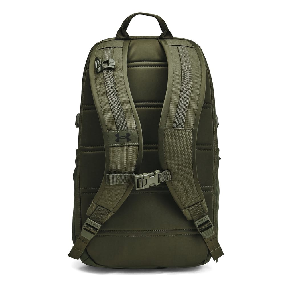 Discover the Under Armour backpack, designed for practicality and style. Featuring a secure zipper and buckle closure, this backpack ensures your belongings are safe. The top handle offers easy carrying, while the front pocket and rubber badge add functional embellishments. The iconic logo completes the look, making it a versatile choice for any occasion. -