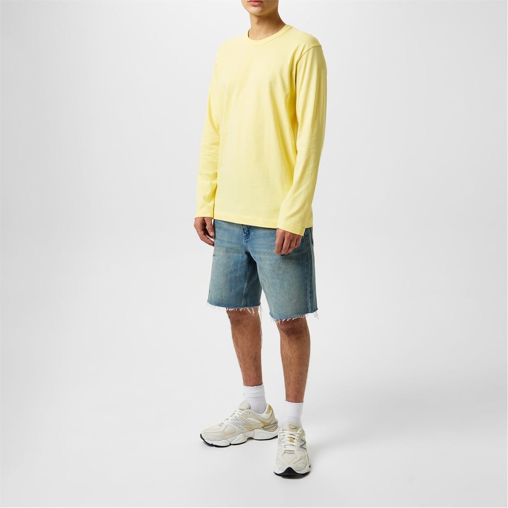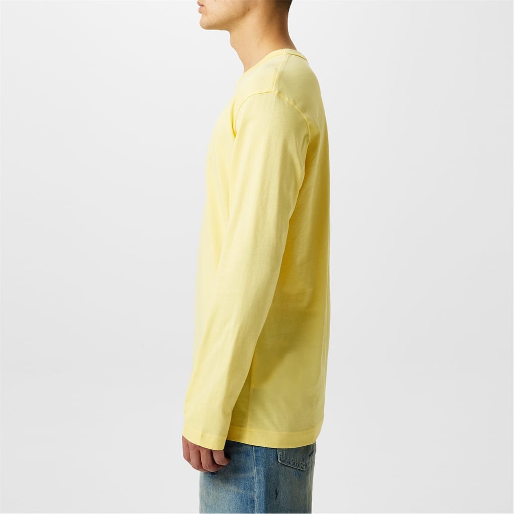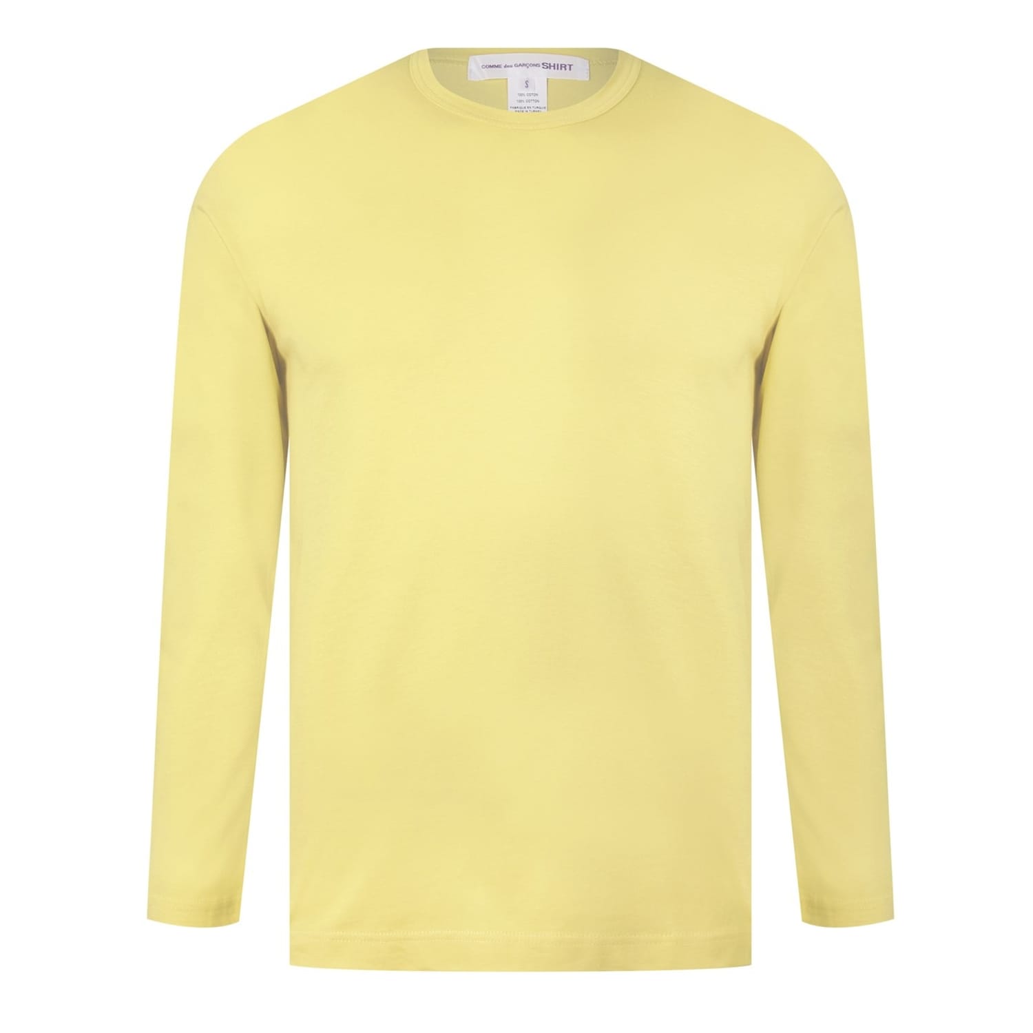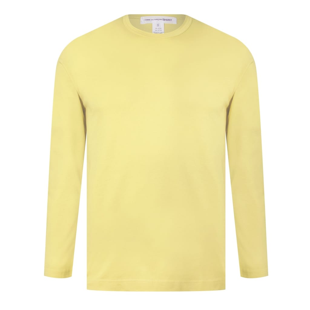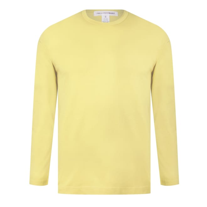 This Comme des Garcons T-shirt is a staple for casual wear, featuring a crew neck and long sleeves. The regular fit ensures comfort and style, while the iconic logo embellishment adds a distinctive touch. Ideal for those who appreciate understated yet fashionable design in their wardrobe essentials. -