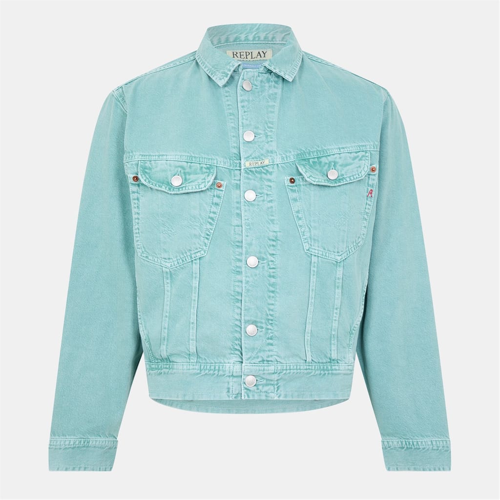 This Replay denim jacket features a classic shirt collar and a regular fit, offering a timeless appeal. The short length and straight hem provide a structured silhouette. It is designed with a solid pattern and includes button closure for a secure fit. Embellished with a logo, chest pocket, and front pocket, this jacket combines style with functionality. -