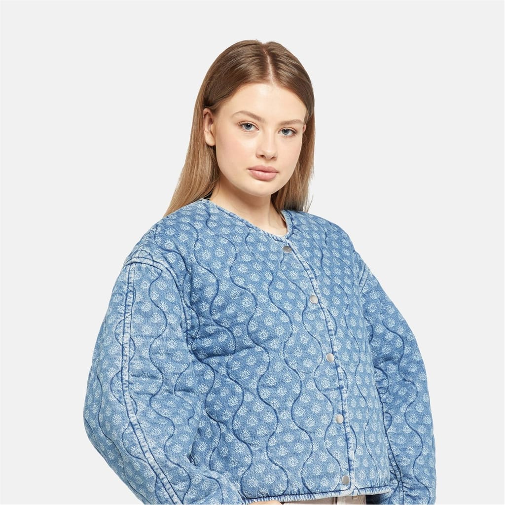 This Levi's quilted jacket features a relaxed fit and a short length, offering a modern twist with its geometric pattern. The drop shoulder design adds a contemporary touch, while the straight hem provides a clean finish. Equipped with snap button closure and practical pockets, this jacket combines style and functionality effortlessly. -