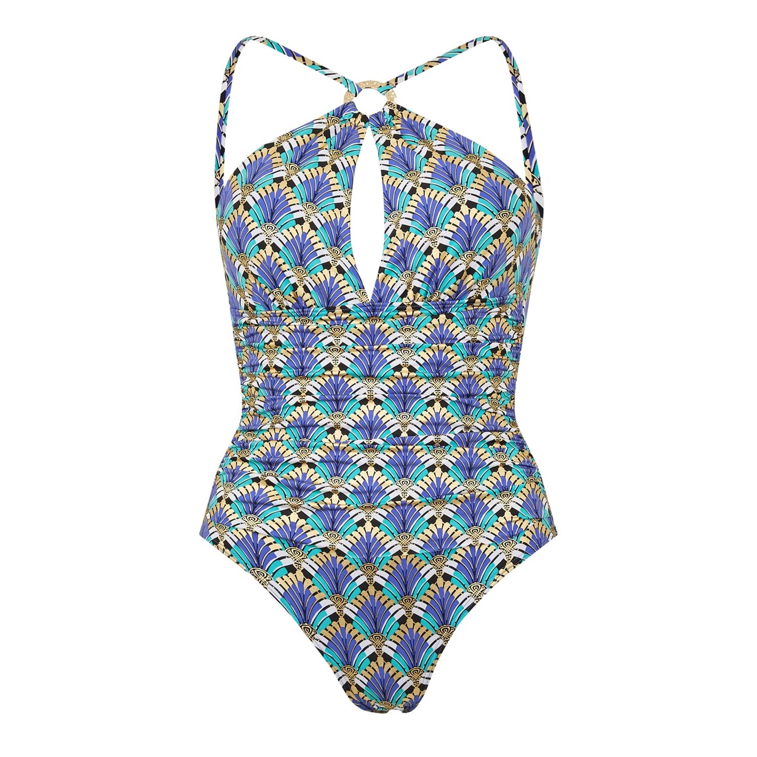 Dive into style with Biba's geometric one-piece swimwear. Perfect for swimming, this piece combines fashion and function effortlessly. The striking geometric pattern adds a modern touch, making it a standout choice for any swim occasion. -