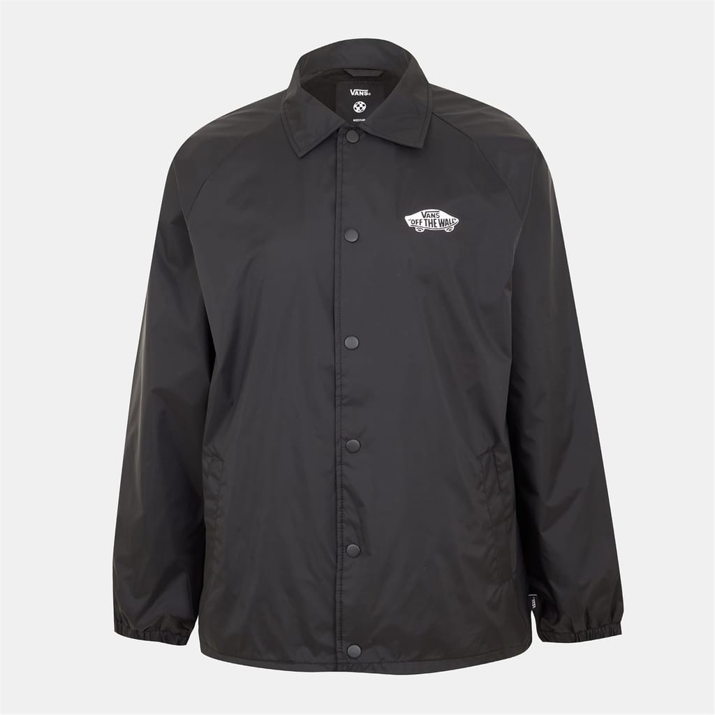 This Vans coach jacket features a classic shirt collar and a straight hem, offering a timeless look. The regular fit ensures comfort, while the raglan sleeves with elasticated cuffs provide ease of movement. The solid pattern is complemented by a logo embellishment, adding a touch of brand identity. The snap closure offers convenience and style, making it a versatile addition to any wardrobe. -