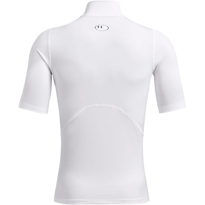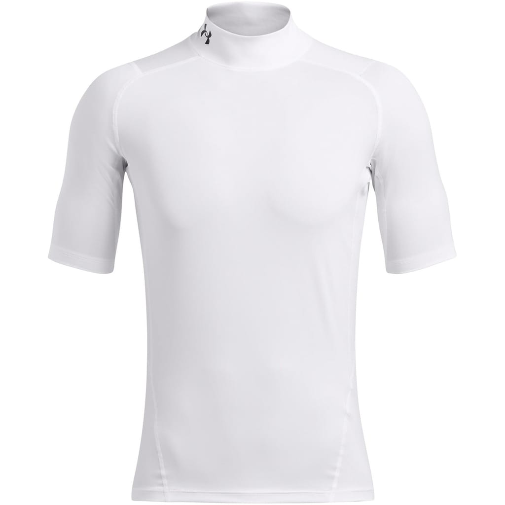 Enhance your athletic wardrobe with Under Armour compression fit top. Designed as a base layer, it features a mock neck and short sleeves, ensuring comfort during intense workouts. The high collar adds a sleek touch, while the brand's logo subtly embellishes the design. Ideal for those seeking performance and style in their athletic attire. -