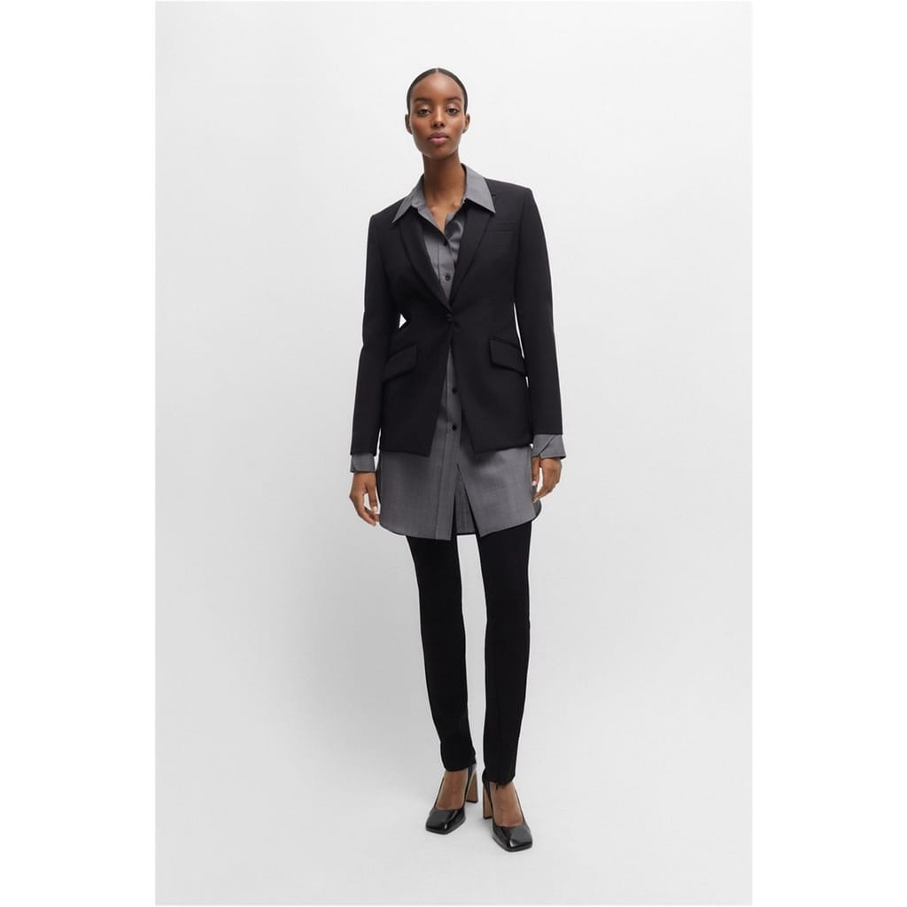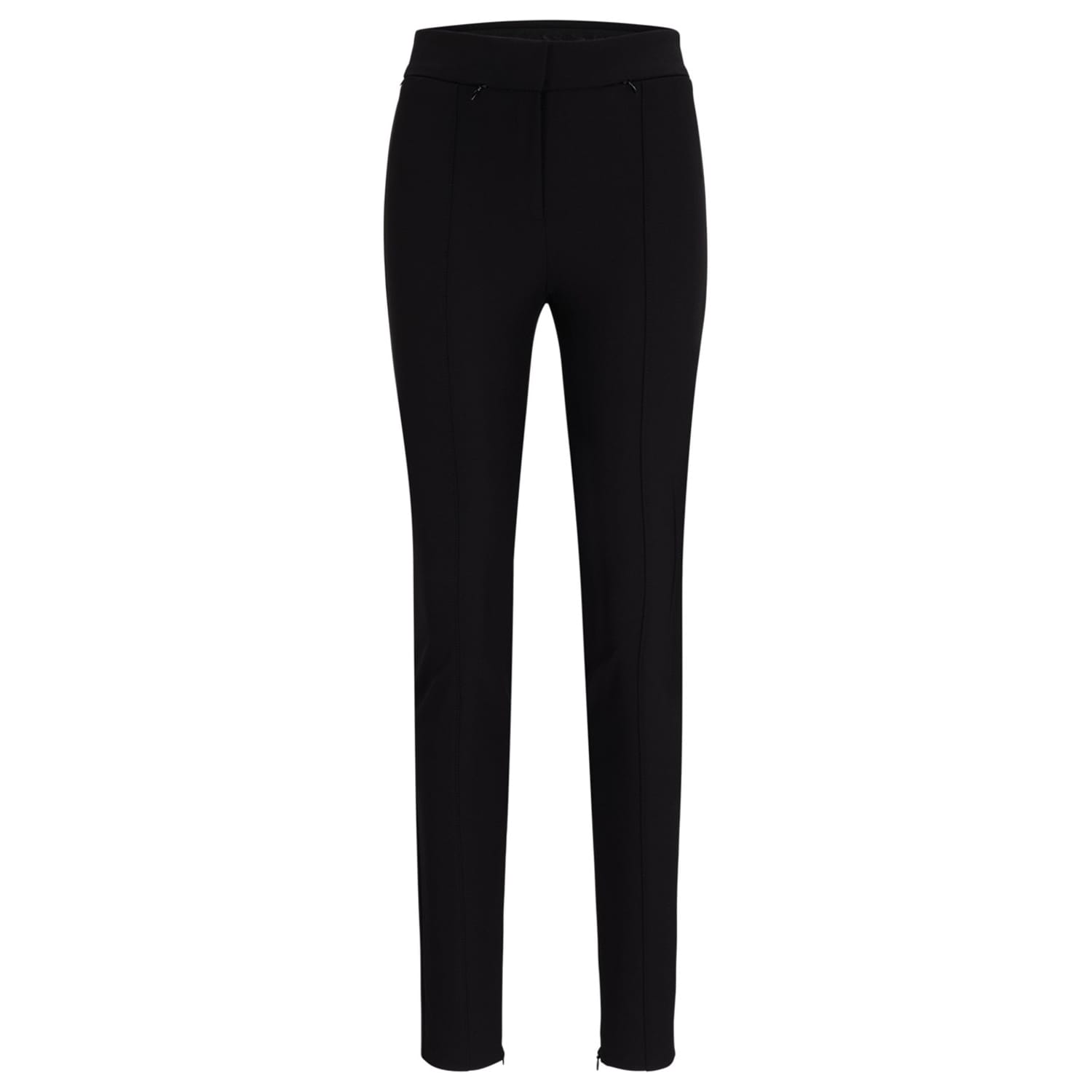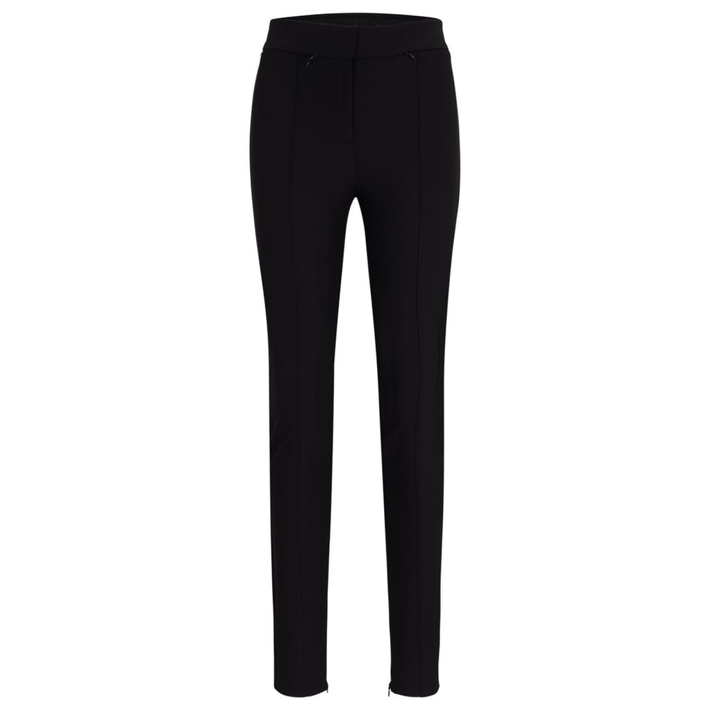 These Boss trousers offer a sleek slim fit, perfect for a refined look. Featuring a zip fly and button closure, they ensure a secure fit. The subtle logo embellishment adds a touch of brand identity, making these trousers a stylish choice for any wardrobe. -