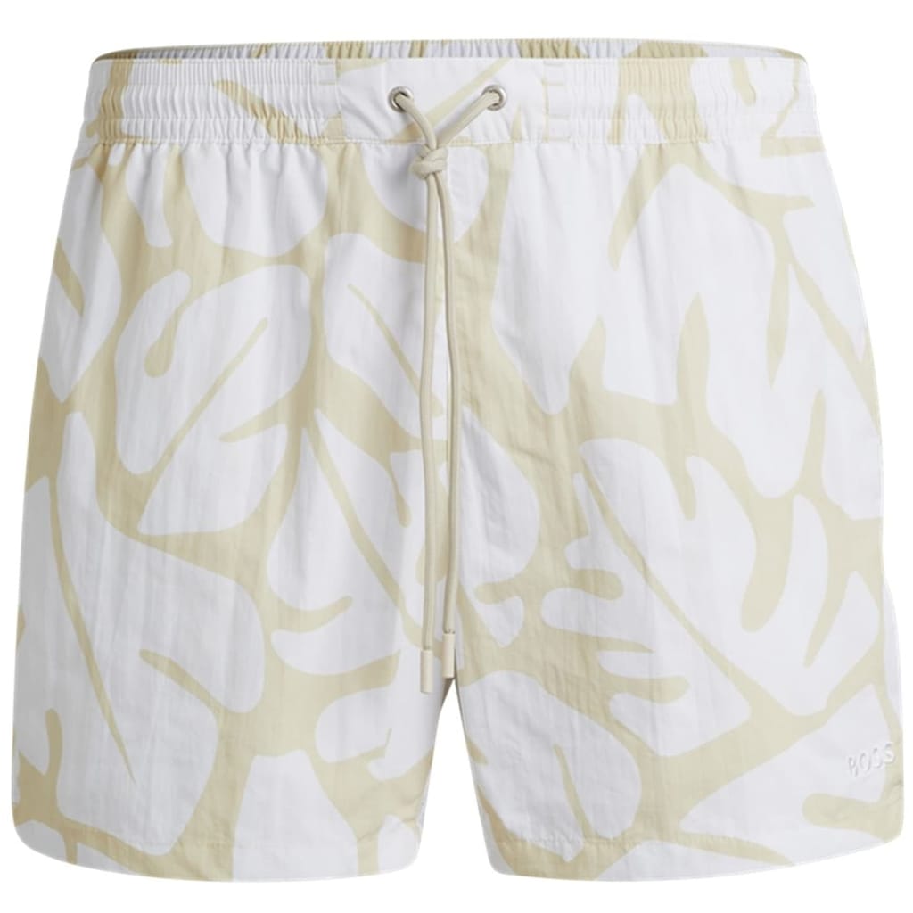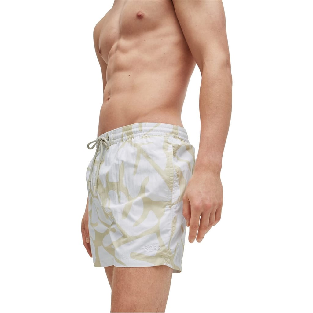 Discover the Boss swimwear collection with these stylish swim bottoms. Featuring a floral pattern, these swim bottoms are designed with a convenient drawstring closure for a secure fit. The iconic logo embellishment adds a touch of brand recognition, making them a perfect choice for your next beach or poolside outing. -