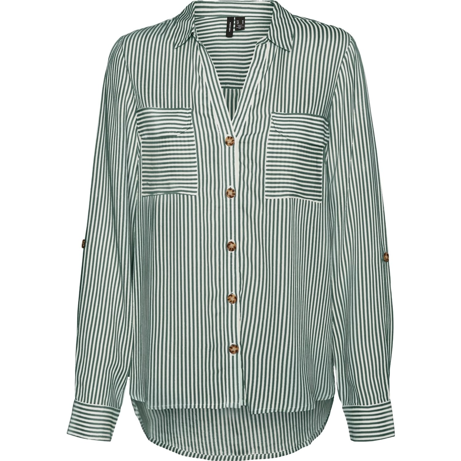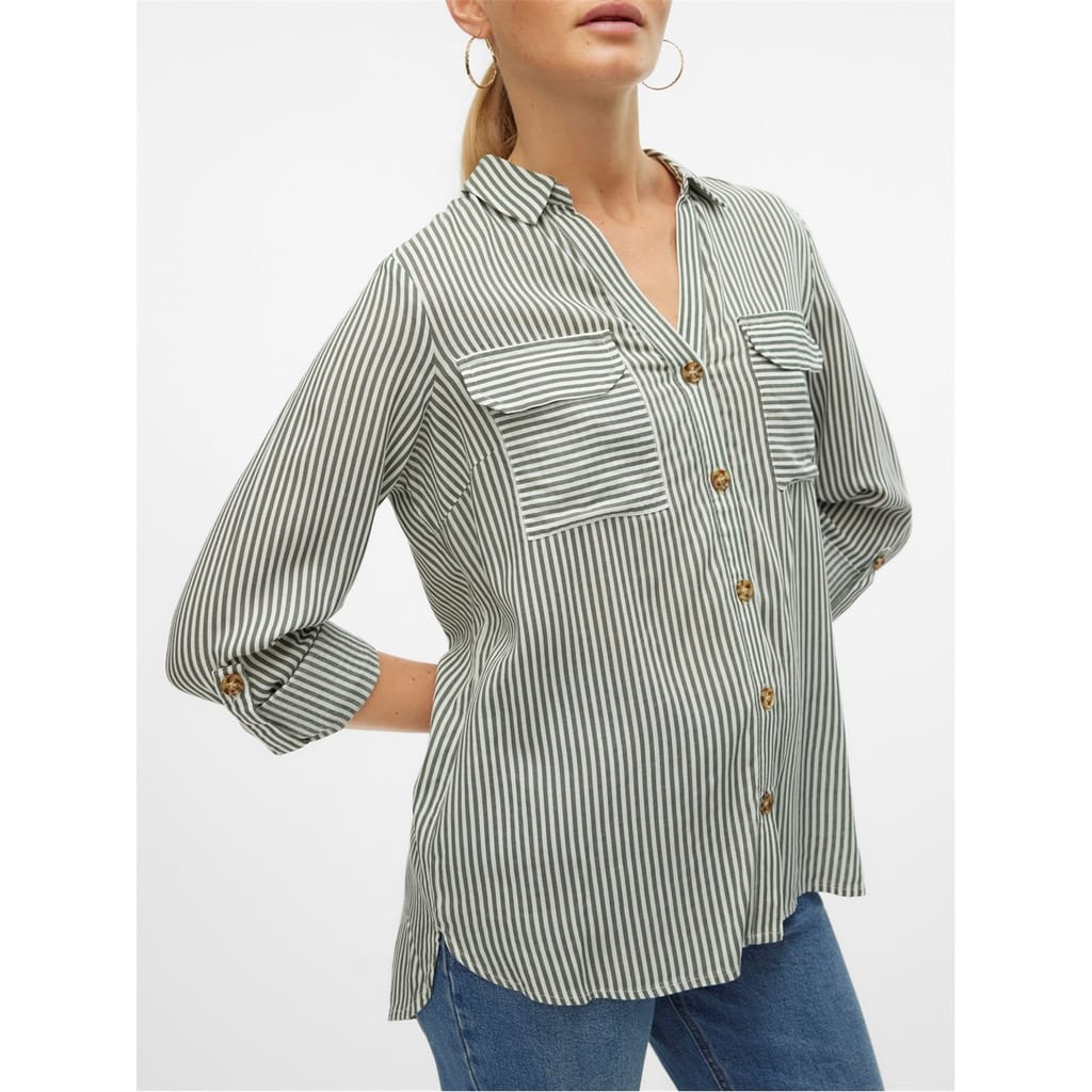 This Vero Moda utility shirt combines style and functionality. Featuring a stripe pattern and a regular fit, it's perfect for a polished look. The shirt collar and button closure add classic touches, while the long sleeves with barrel cuffs enhance its refined appeal. Ideal for versatile wear, this shirt is a wardrobe essential. -