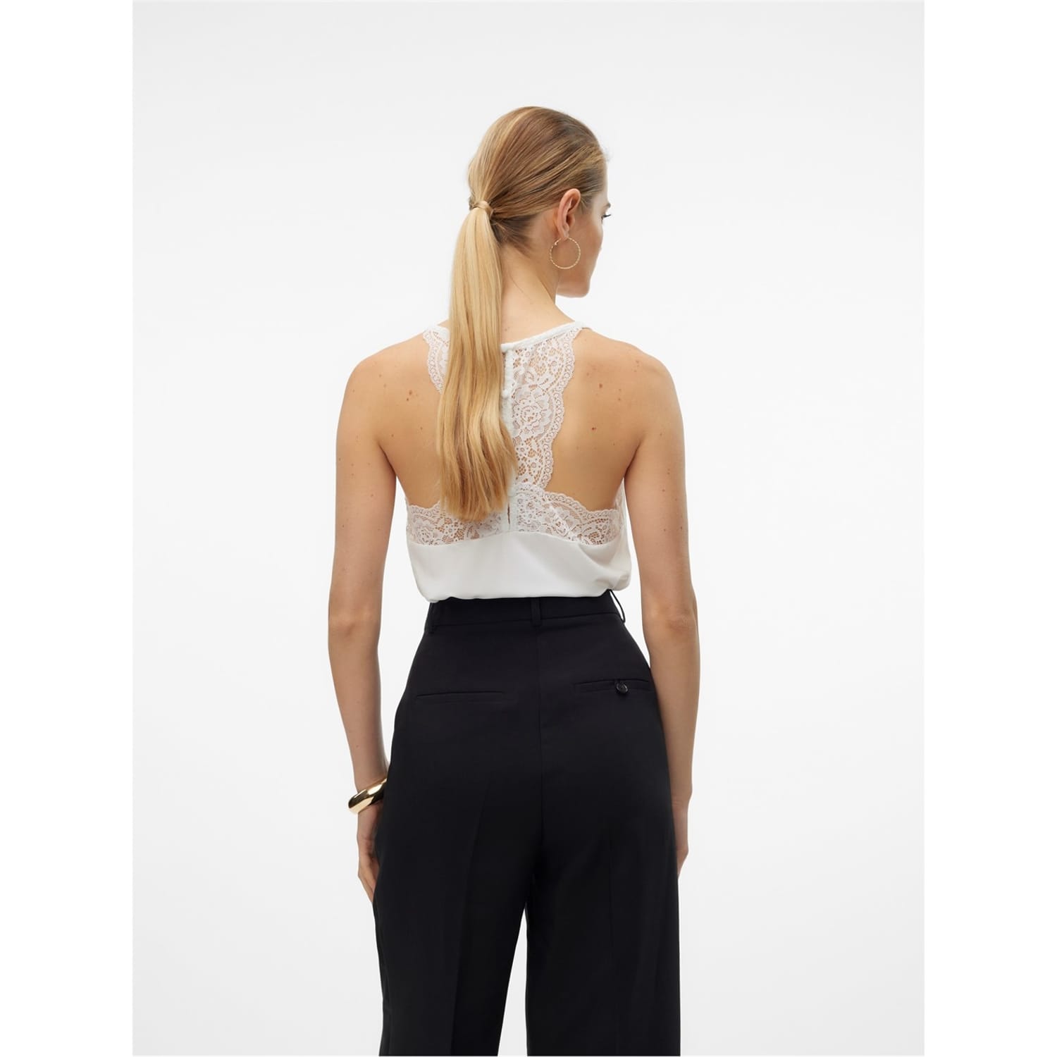 This Vero Moda camisole tank top is a stylish addition to any wardrobe. Featuring a sleeveless design with spaghetti straps and a flattering V-neck, it offers a comfortable regular fit. Made from woven fabric, it provides both comfort and durability. Perfect for a casual day out or as a layering piece. -