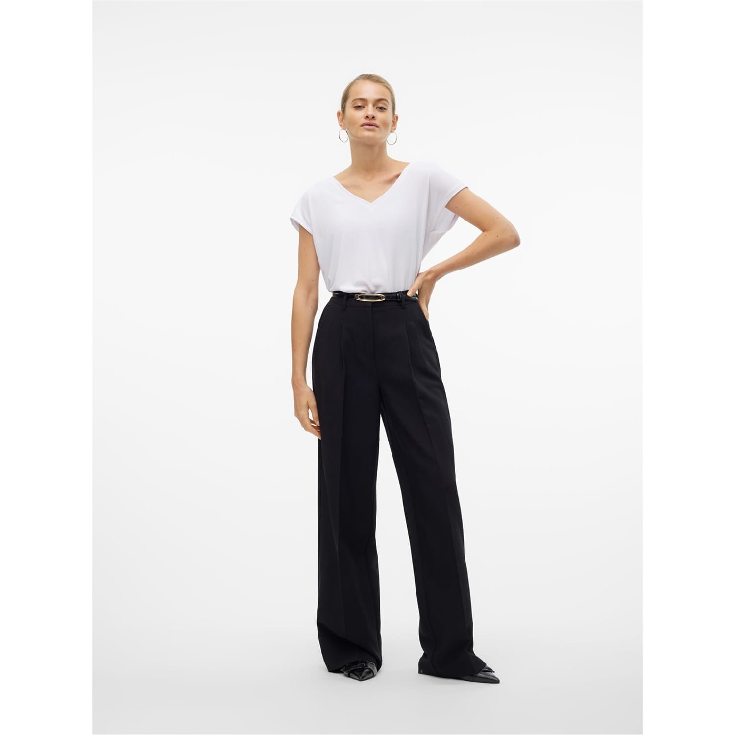 This Vero Moda top features a classic v-neck design and a regular fit, offering a timeless and versatile addition to your wardrobe. The solid pattern adds a touch of simplicity, making it suitable for various occasions. -