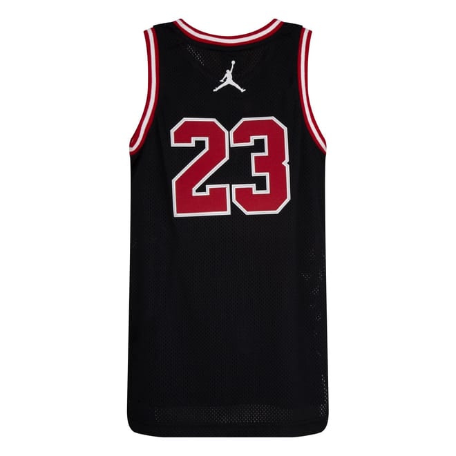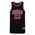 The Air Jordan performance vest is designed with mesh details for enhanced breathability. Featuring a relaxed fit and a straight hem, this solid vest includes a logo and pocket embellishments. A number graphic on the back adds a sporty touch, making it ideal for athletic pursuits. -