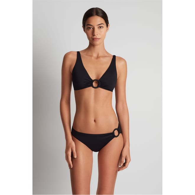 Lauren by Ralph Lauren's Ring Triangle Bikini features sleek triangular lines with hardware detailing. This designer women's beachwear features triangle cups with eye-catching ring hardware for a smooth finish. Designed as a two-piece swimsuit set, this swimwear piece delivers a poolside aesthetic ideal for when you bathe in style.