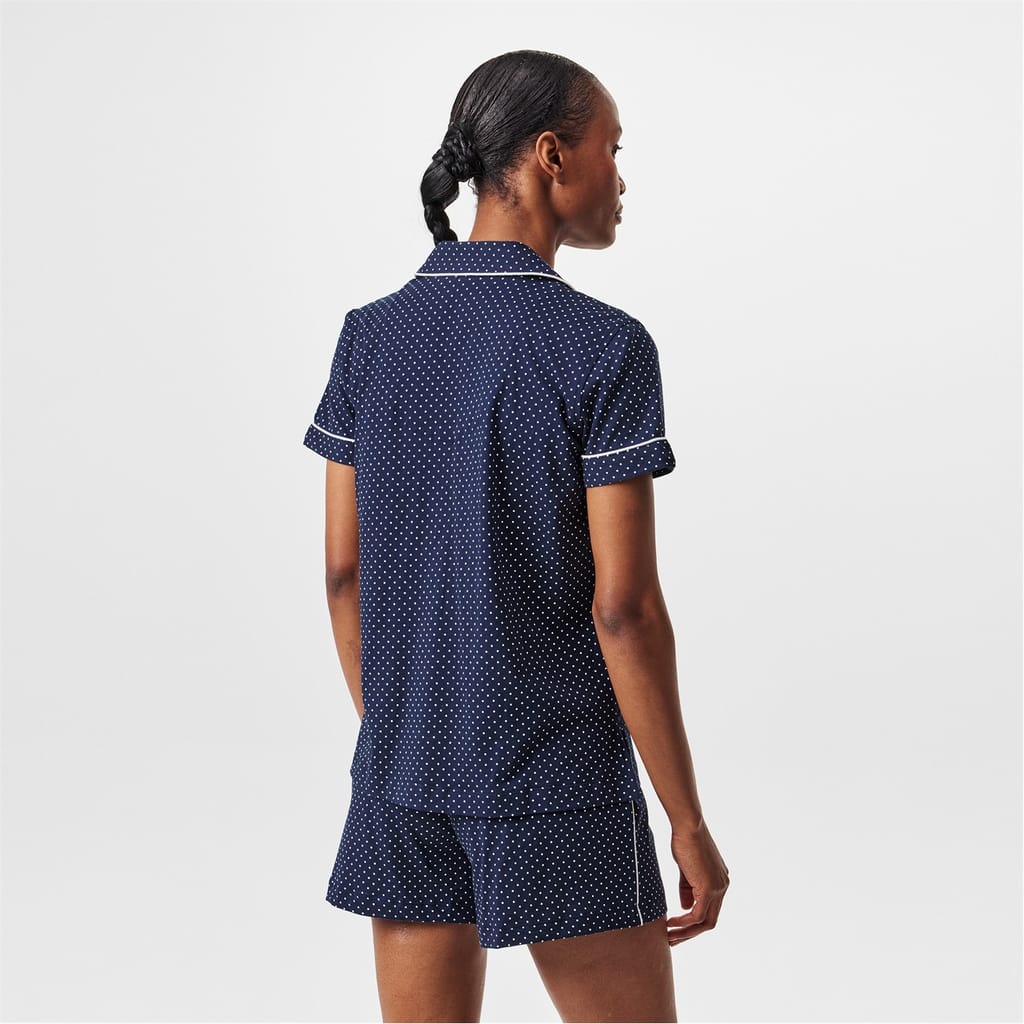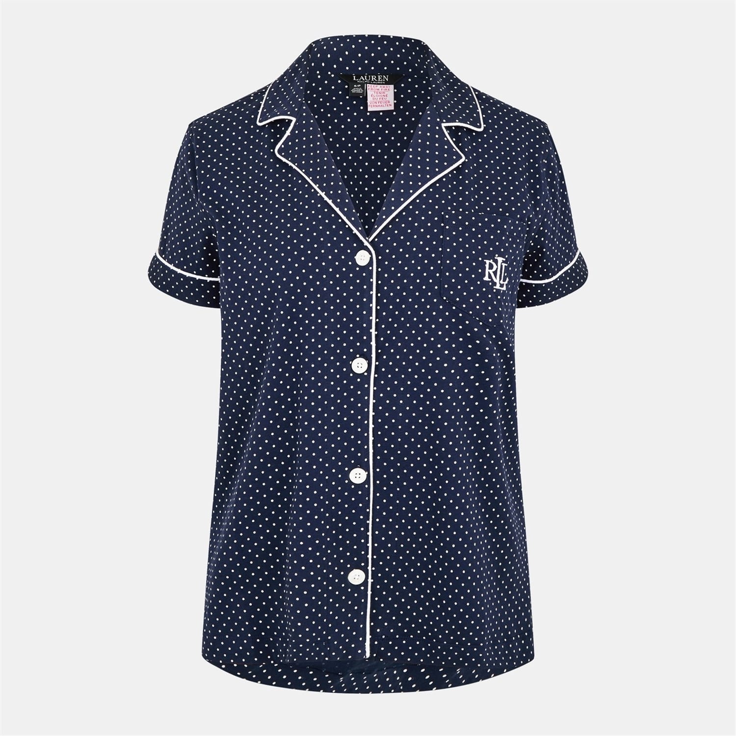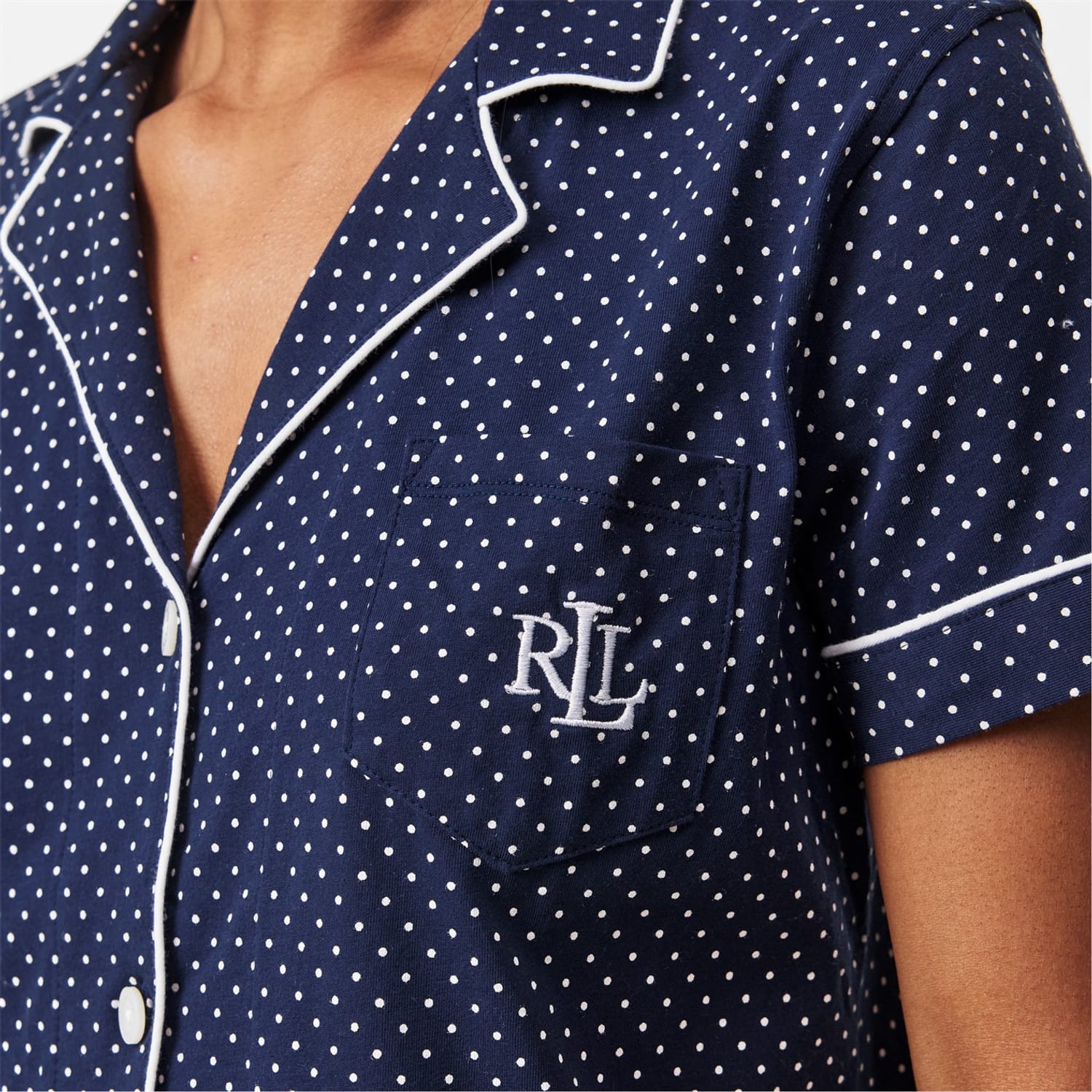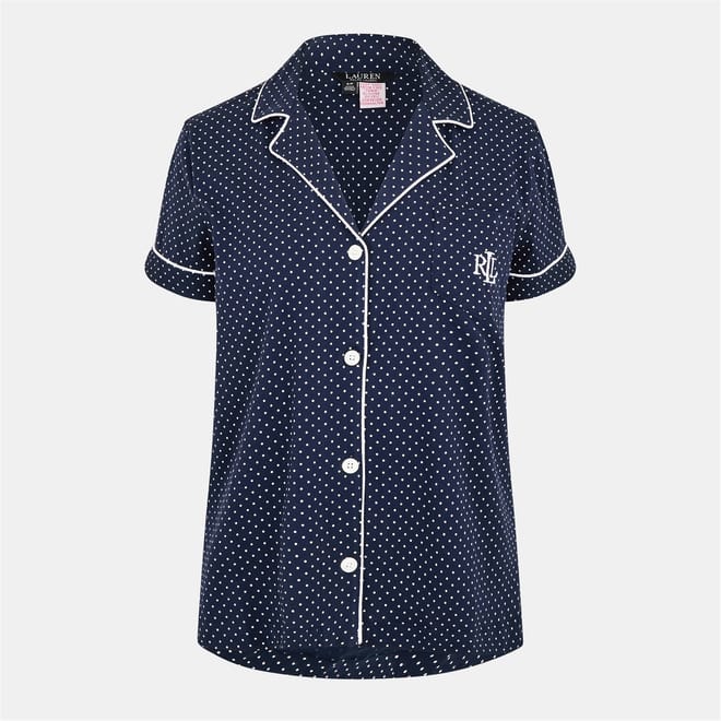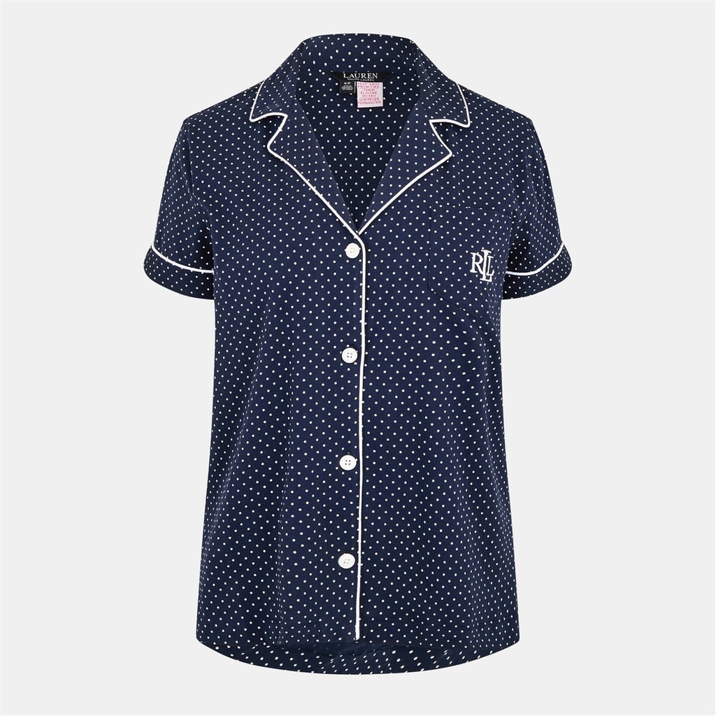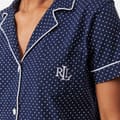 Discover the Lauren by Ralph Lauren sleepwear set, featuring a charming polka dot pattern. This two-piece pyjama set offers a regular fit and includes a button closure for ease. The ensemble is adorned with embroidered details and practical pockets, adding a touch of elegance to your nightwear collection. -