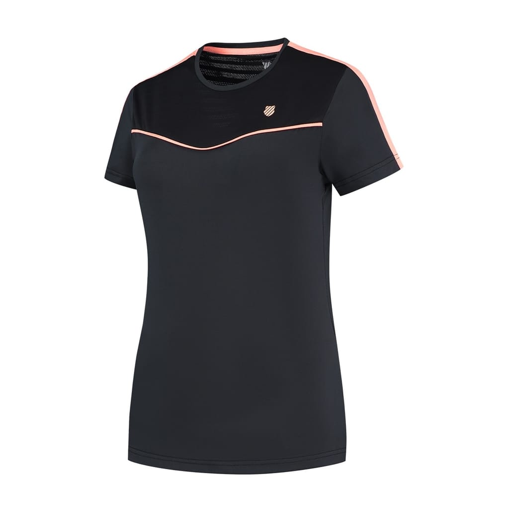 The K-Swiss training T-shirt is designed for performance and versatility. Featuring a crew neck and short sleeves, it provides comfort and ease of movement. With a regular fit, this top is ideal for active pursuits, ensuring you stay comfortable during any workout. -