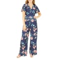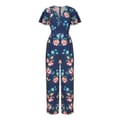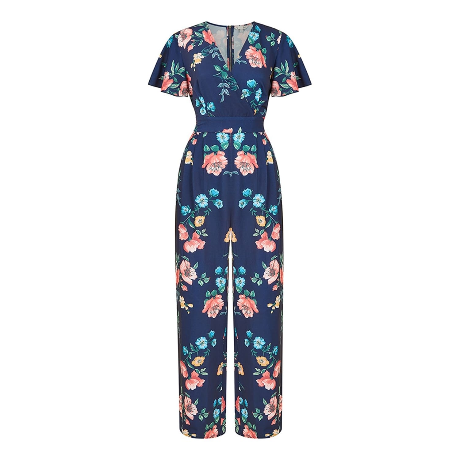Embrace elegance with Yumi's floral jumpsuit, featuring a V-Neck and flutter short sleeves. Designed in a regular fit, this piece offers a stylish and comfortable option for any occasion. -