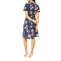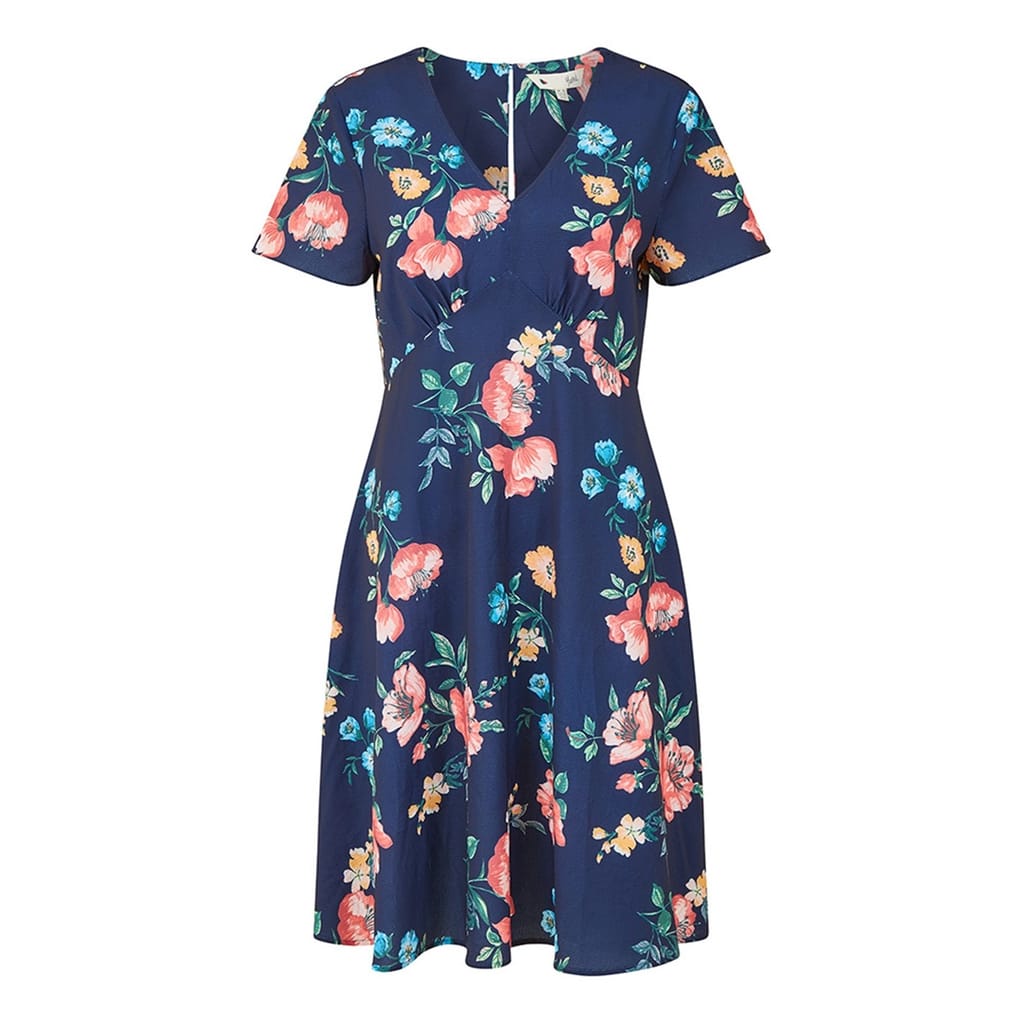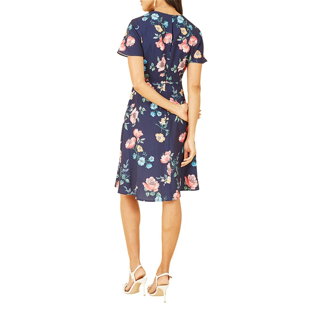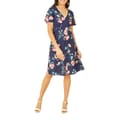 Discover the Yumi skater dress, a perfect blend of style and comfort. This knee-length dress features a charming floral pattern and a flattering V-neckline. The short sleeves with a kimono style add a unique touch, making it an ideal choice for various occasions. -