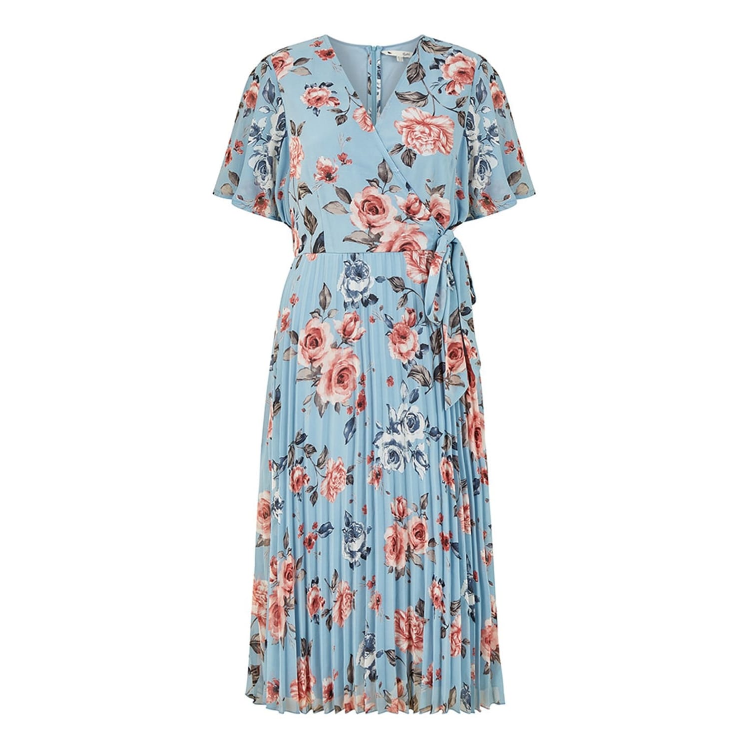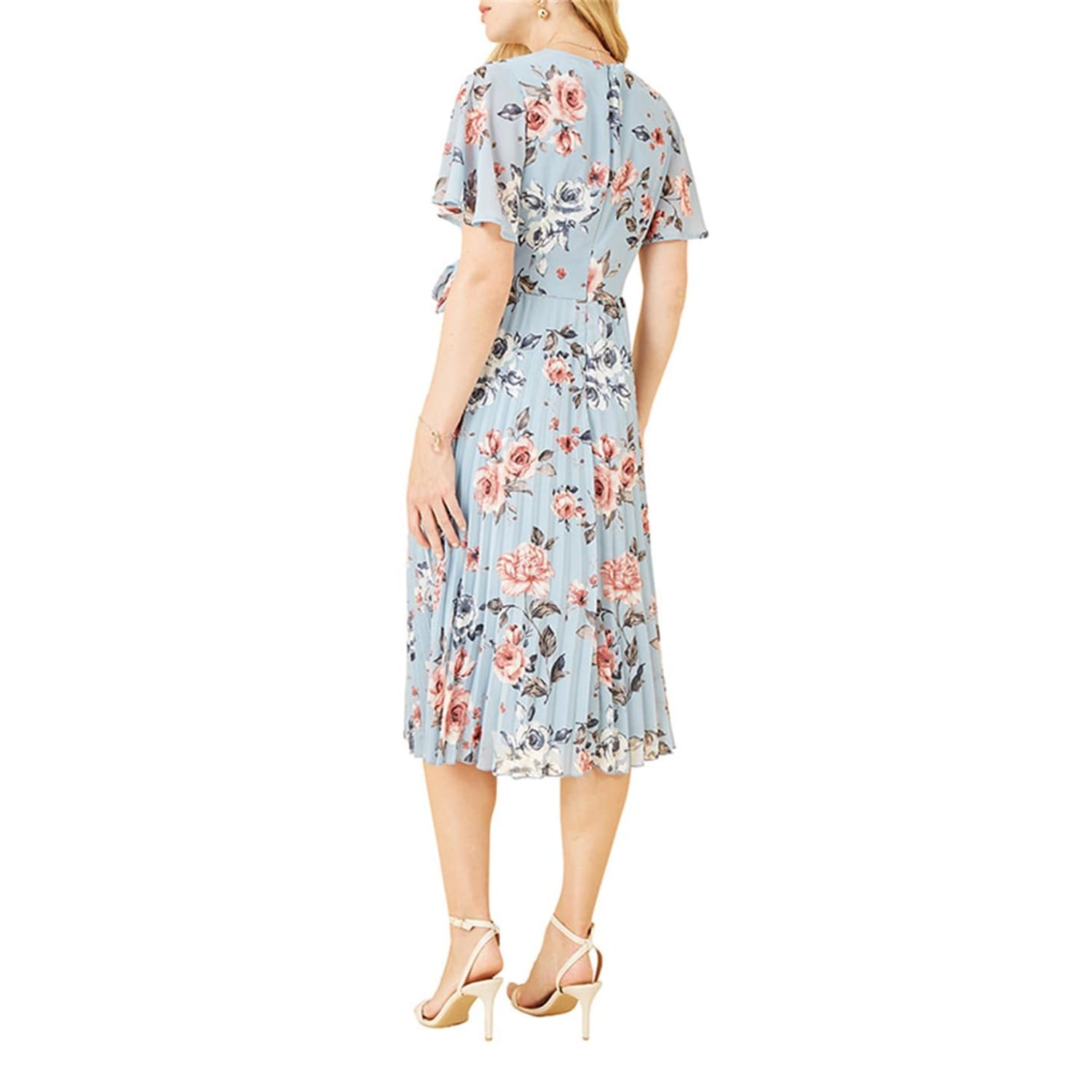 Discover the Yumi wrap dress, a perfect blend of elegance and style. This midi dress features a charming floral pattern and a flattering V-neckline. The short sleeves are designed in a flutter style, adding a touch of femininity. The dress is adorned with pleats and has a tie waist closure, ensuring a comfortable fit. Ideal for any occasion, this dress is a must-have in your wardrobe. -