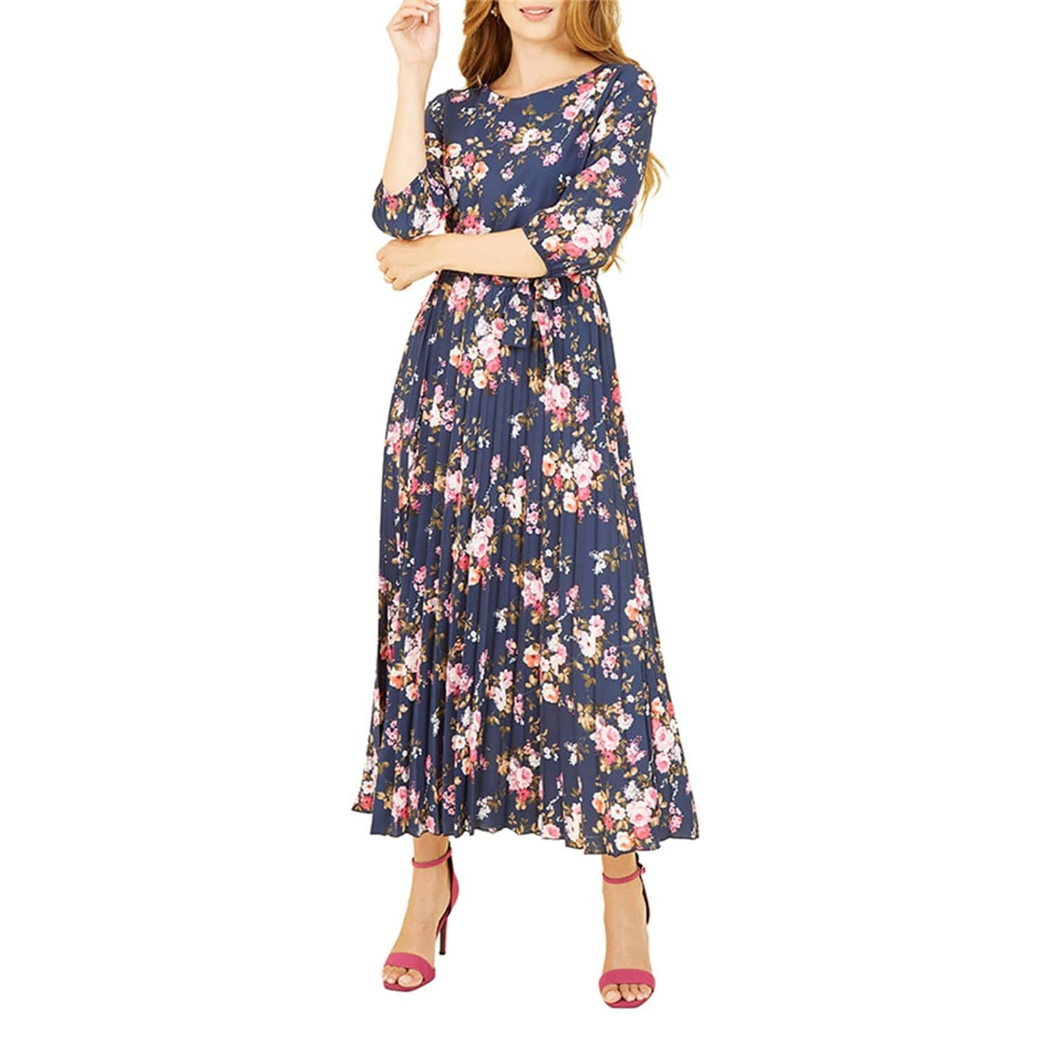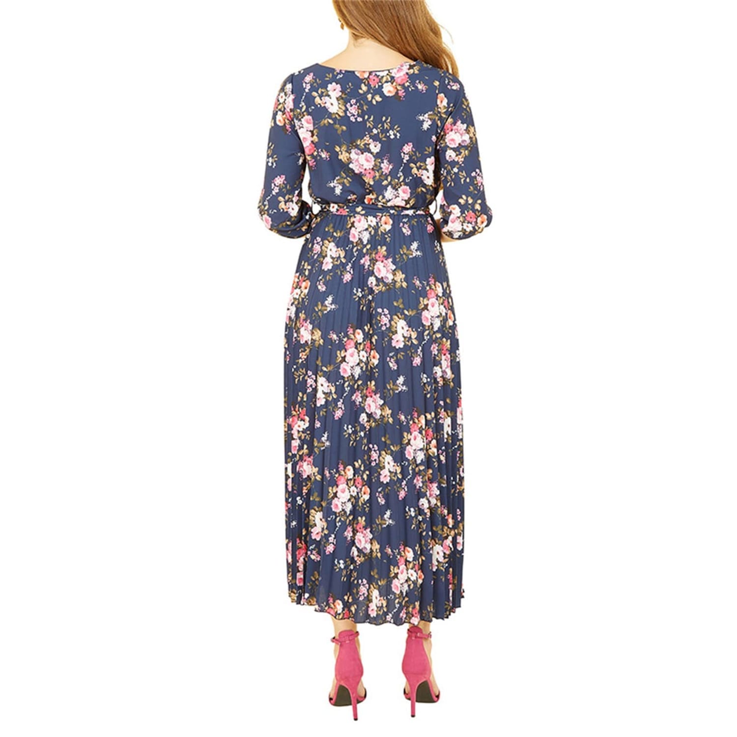 This Yumi maxi dress features a charming floral pattern, perfect for adding a touch of elegance to your wardrobe. Designed with a crew neck and regular fit, it offers both comfort and style. The dress includes practical pockets, making it a versatile choice for various occasions. -