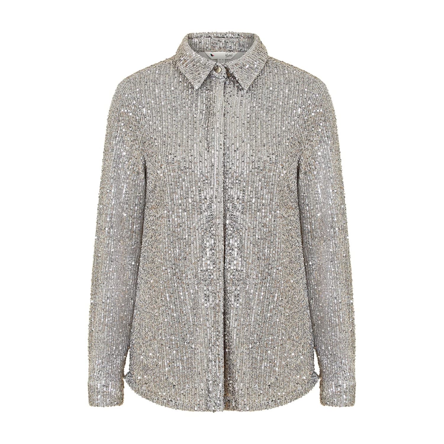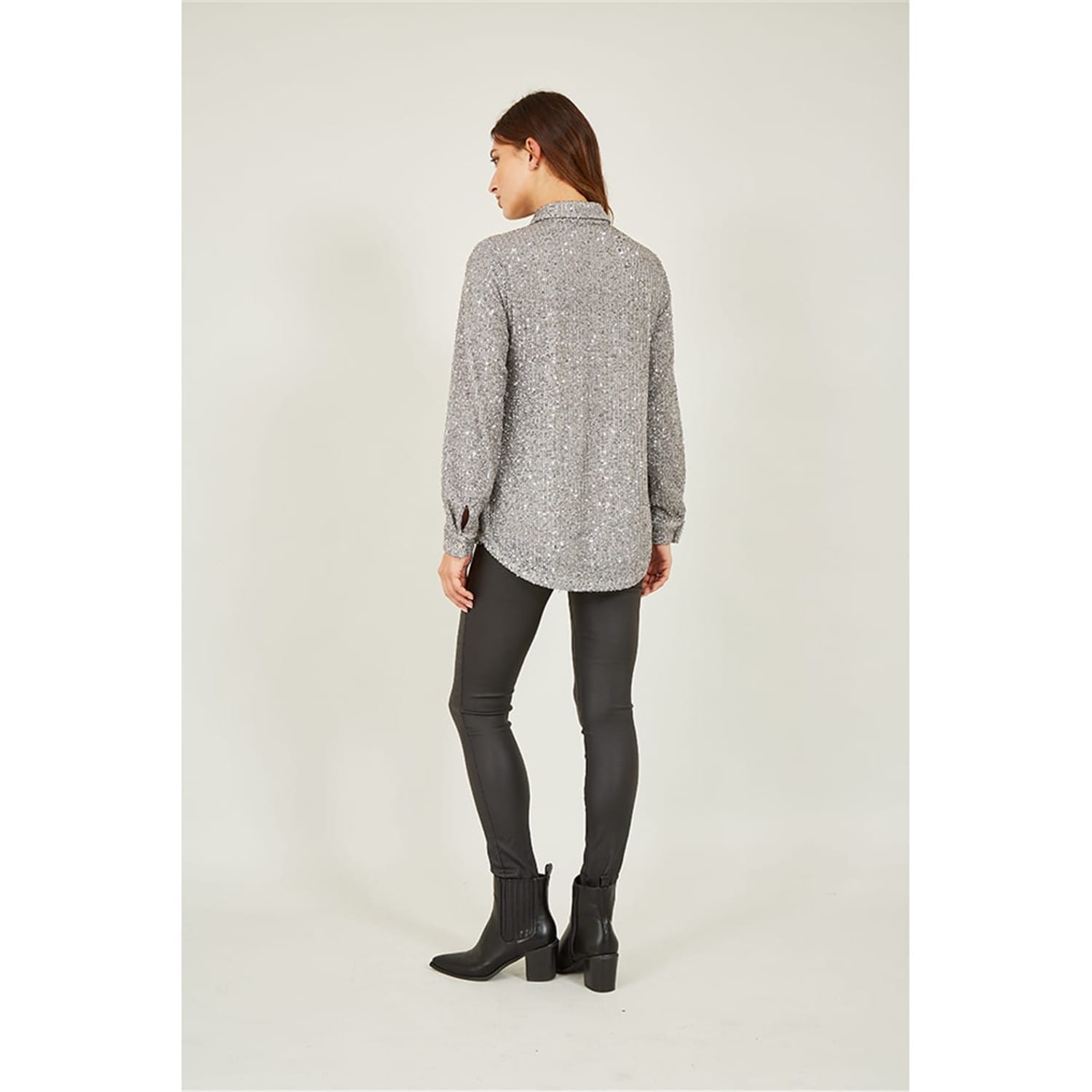 This Yumi dress shirt is a stylish addition to your wardrobe. Featuring long sleeves and a regular fit, it boasts sequin embellishments for a touch of sparkle. The shirt collar and barrel cuffs add a classic touch, while the button closure ensures a secure fit. Perfect for any occasion, this top effortlessly combines elegance with comfort. -