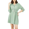 Discover the Mela London shirtdress, a mini-length piece perfect for any occasion. Featuring a collared neck and shirt collar, this dress offers a sophisticated look. The three-quarter sleeves and regular fit ensure comfort and style, while the solid pattern and straight hem add a touch of elegance. Complete with a buckle closure, this dress is a versatile addition to your wardrobe. -