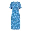 This Mela London wrap dress features a charming floral pattern, perfect for any occasion. The midi length and V-neck design offer a flattering silhouette, while the short sleeves provide a comfortable fit. The dress is elegantly finished with a tie waist closure, adding a touch of sophistication to your wardrobe. -