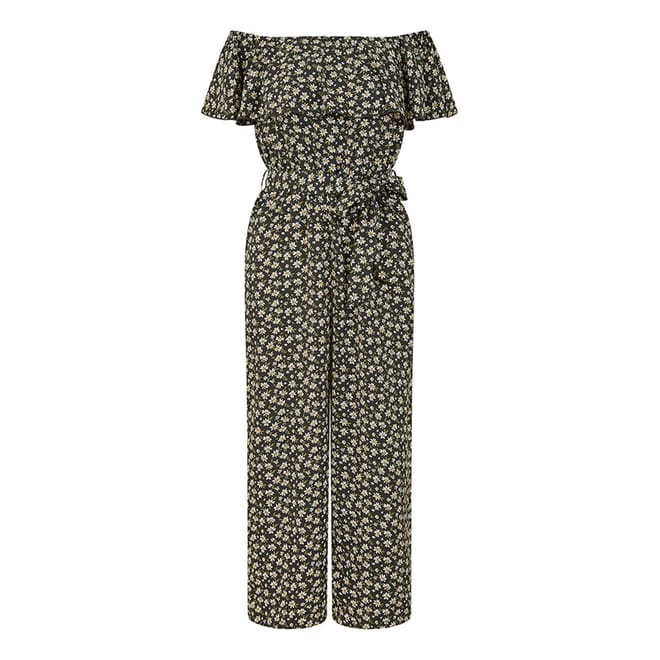 Embrace elegance with this floral off-the-shoulder jumpsuit from Mela London. Featuring a relaxed fit and a tie waist, it offers both comfort and style. The sleeveless design is complemented by ruffle sleeves, adding a touch of sophistication. Perfect for any occasion, this London City print piece is a must-have for your wardrobe. -