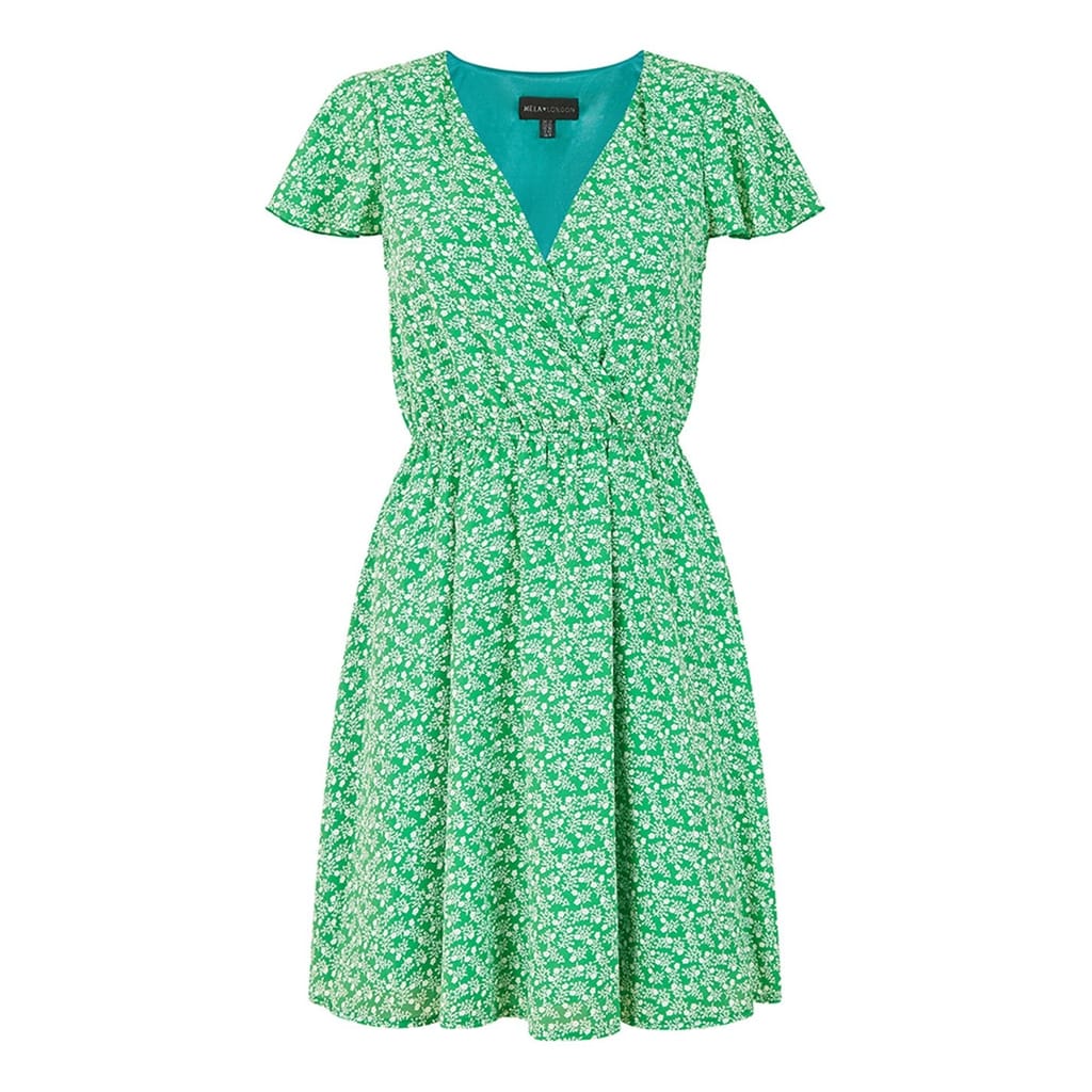 Embrace the charm of Mela London with this skater dress, perfect for any occasion. The mini length and flutter short sleeves add a playful touch, while the V-neckline enhances its elegant appeal. Adorned with a floral print, this dress offers a regular fit, making it a versatile addition to your wardrobe. -