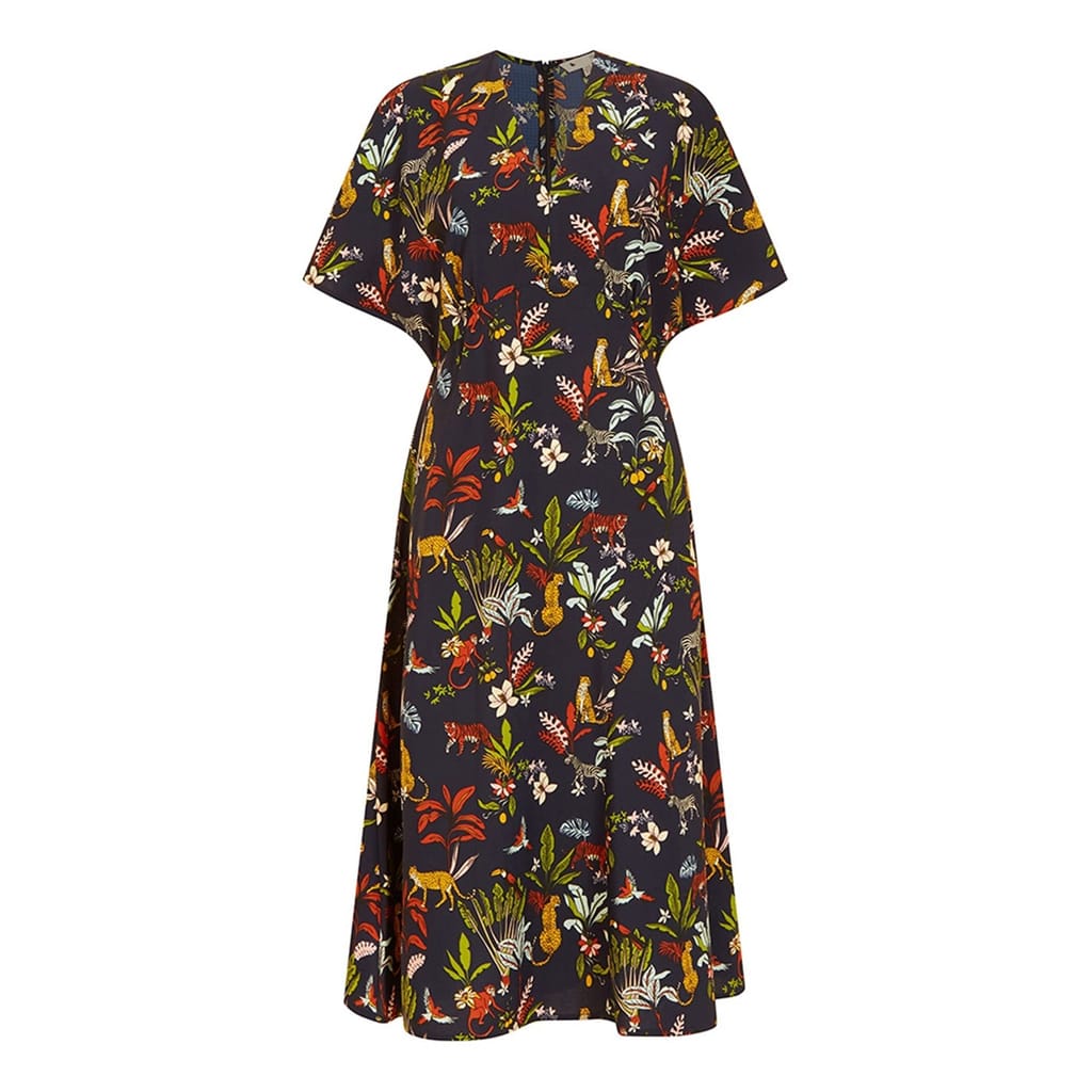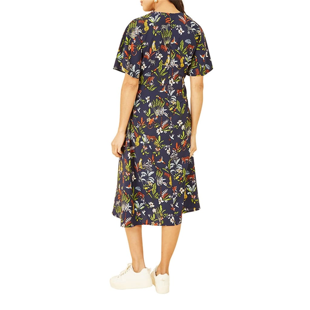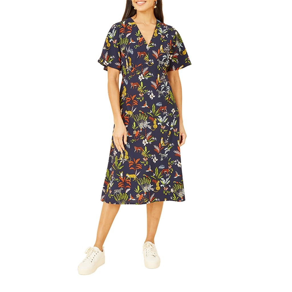 Discover the Yumi midi dress, a stylish wrap design featuring an eye-catching animal print. This dress boasts a flattering V-neck and short flutter sleeves, offering a chic and modern look. Perfect for those who appreciate unique patterns and elegant styles, this dress is a versatile addition to any wardrobe. -