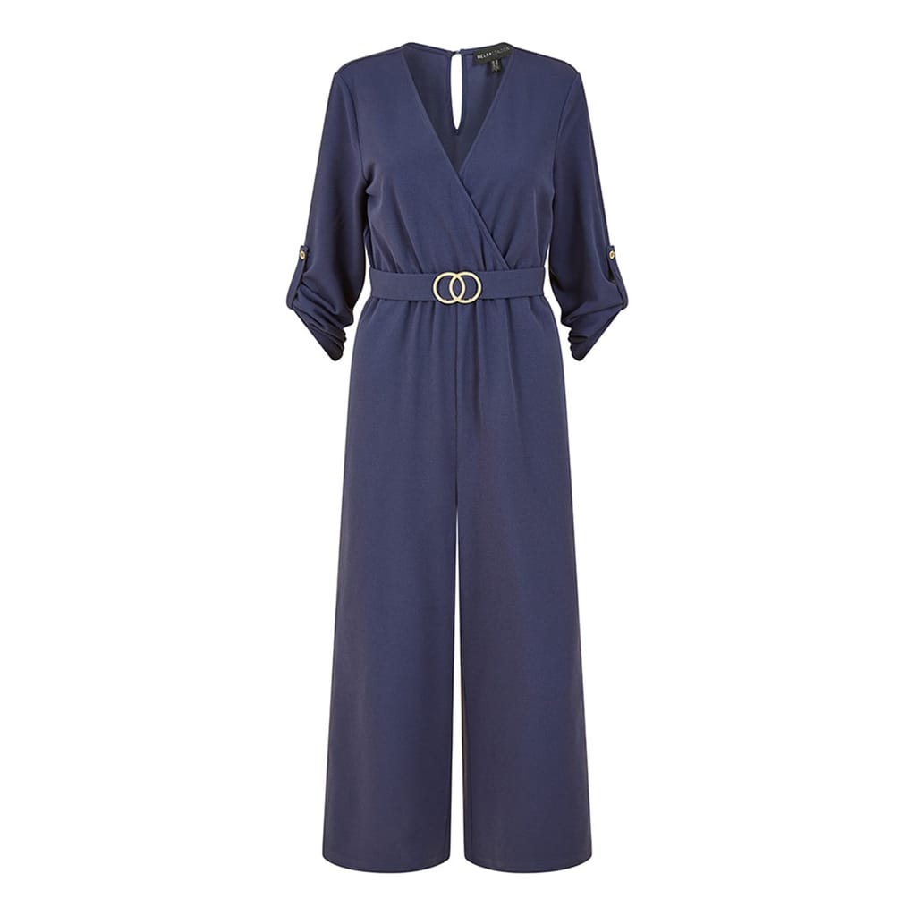 Discover the Mela London London City wrap jumpsuit, designed with a V-Neck and three-quarter cuff sleeves. This regular fit piece features a button and belt closure, offering a stylish and comfortable stretch. Perfect for any occasion, this jumpsuit combines elegance with practicality. -