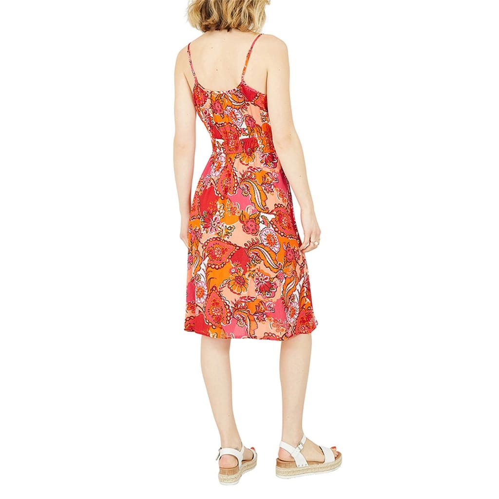 This Yumi slip dress features a captivating paisley pattern, perfect for adding a touch of elegance to your wardrobe. The midi length and scoop neckline create a flattering silhouette, while the spaghetti straps offer a delicate finish. Ideal for those seeking a stylish and comfortable option for various occasions. -