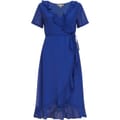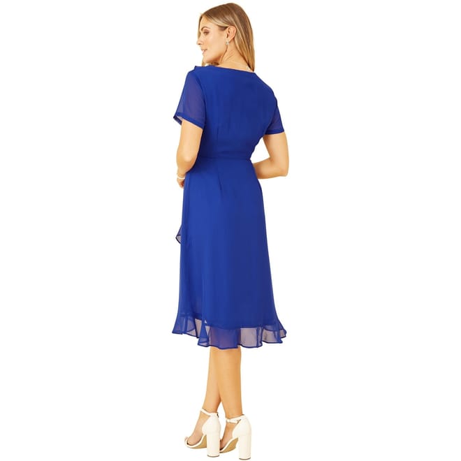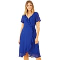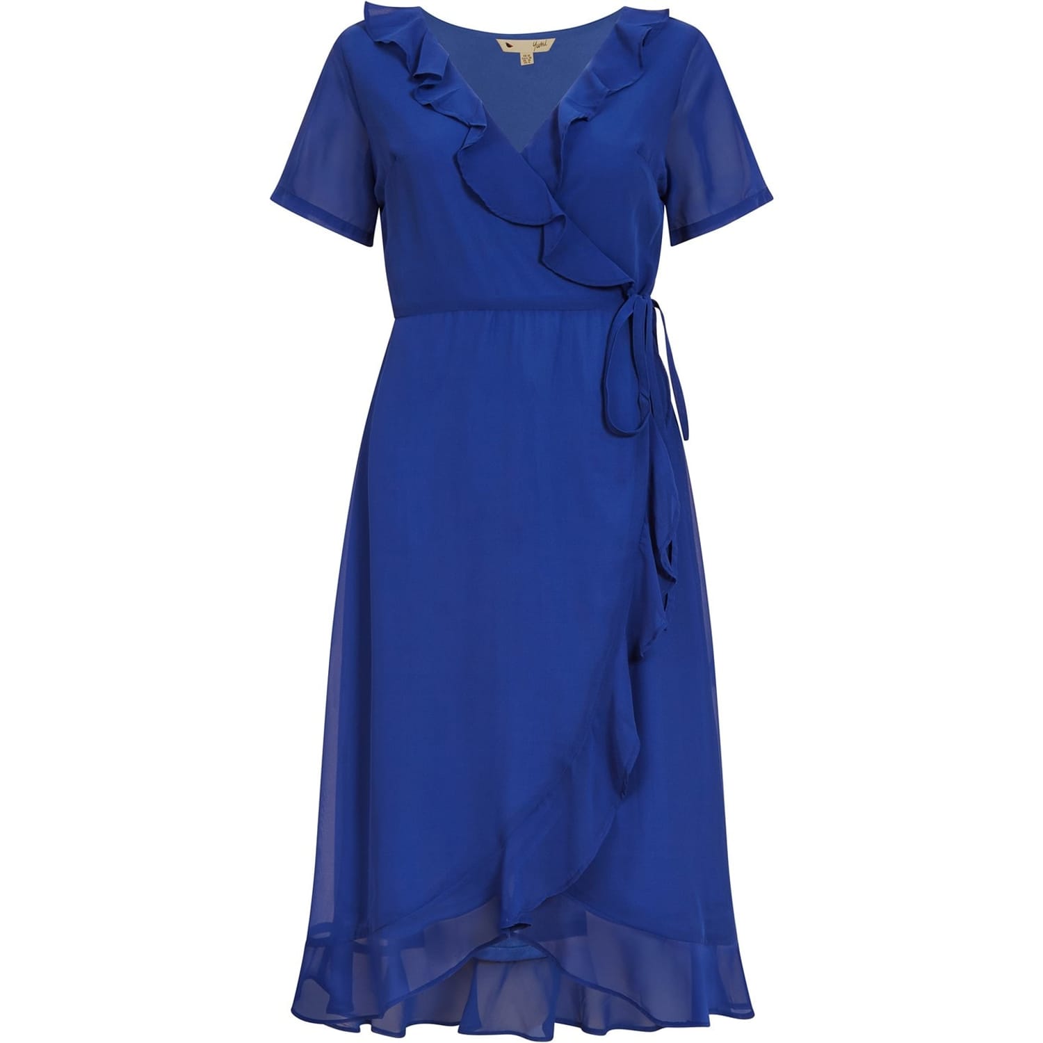 Discover the elegance of Yumi's wrap dress, a perfect blend of style and comfort. This midi dress features a flattering V-neck and short ruffle sleeves, adding a touch of sophistication. The solid pattern and ruffle hem enhance its chic appeal, while the tie closure ensures a perfect fit. Ideal for any occasion, this regular fit dress is a versatile addition to your wardrobe. -