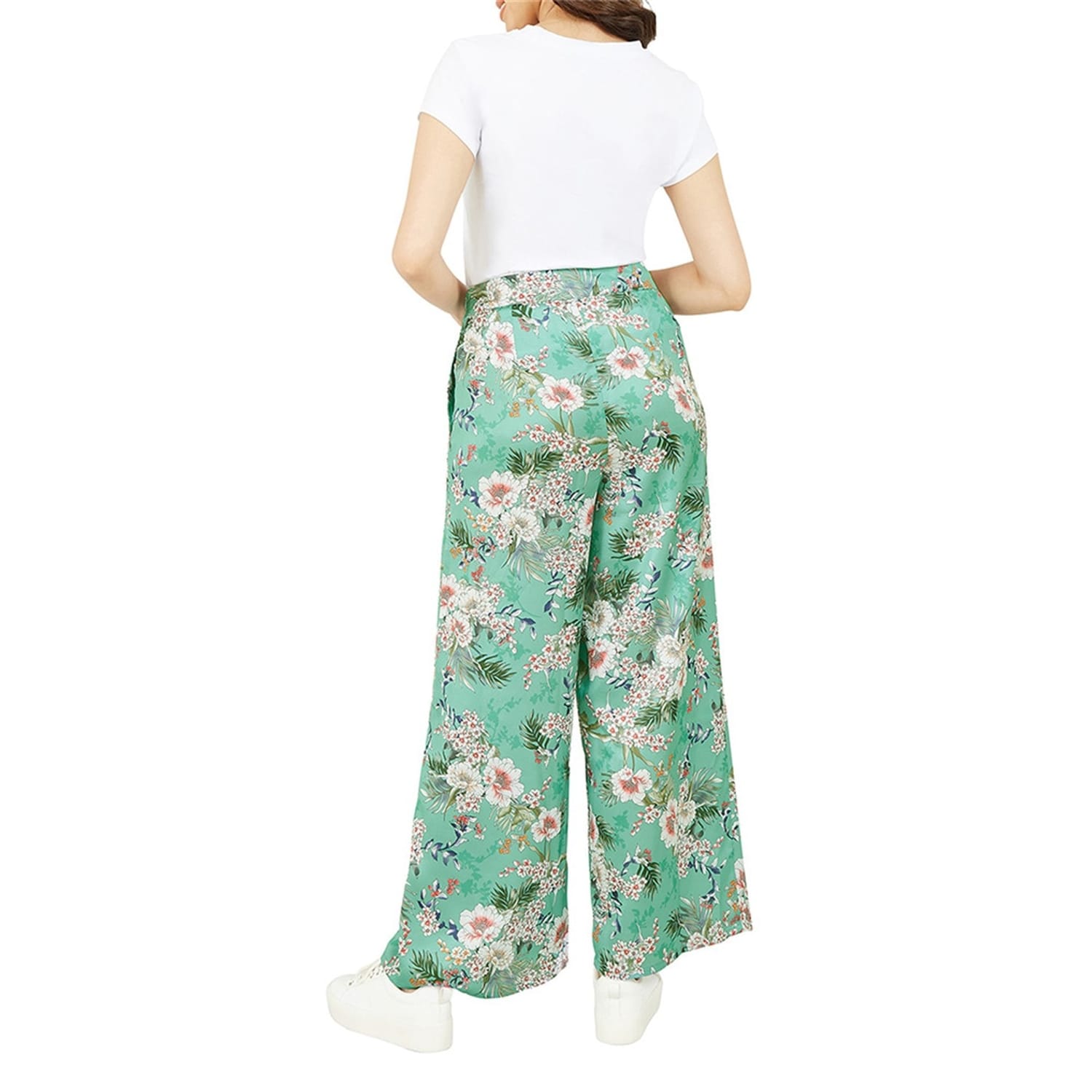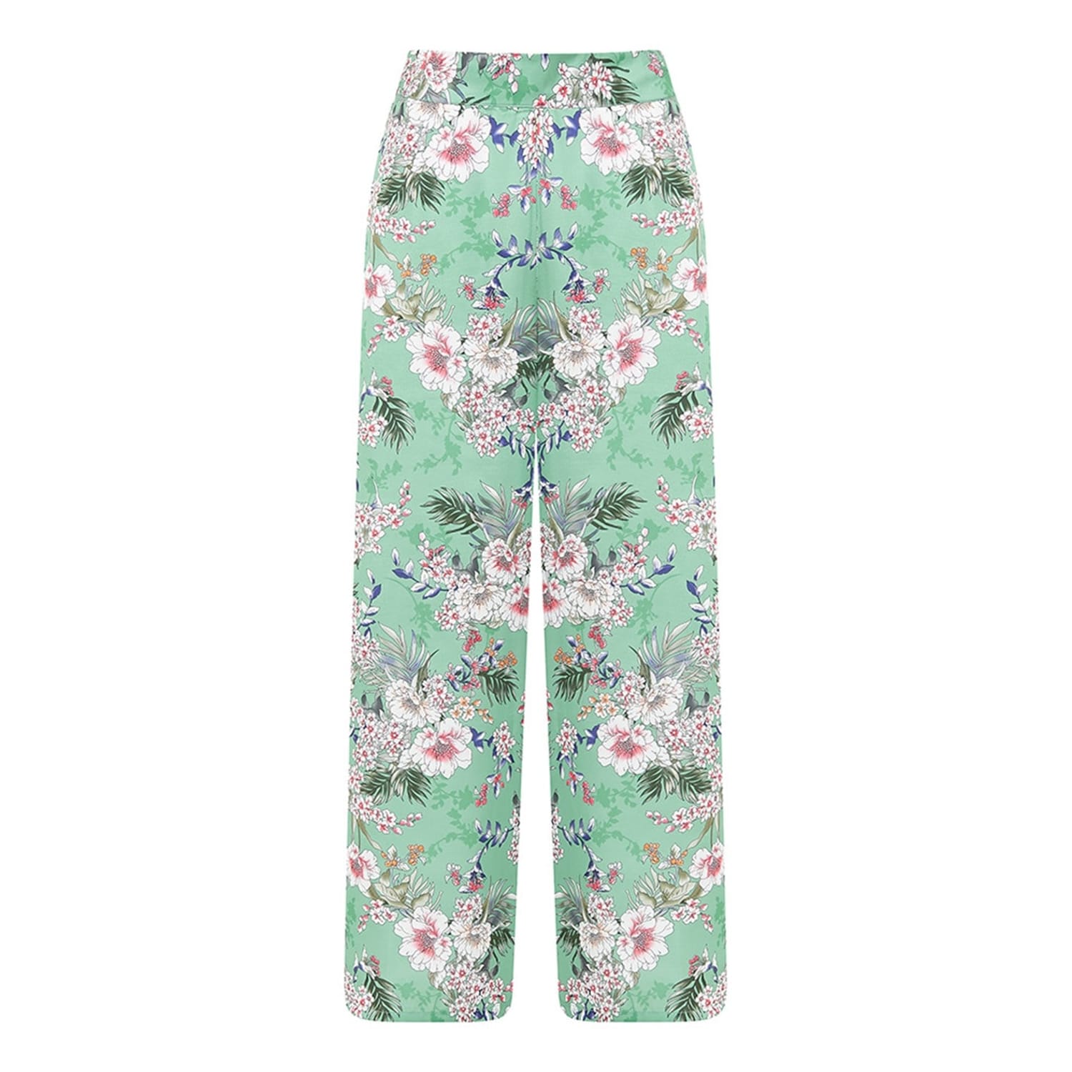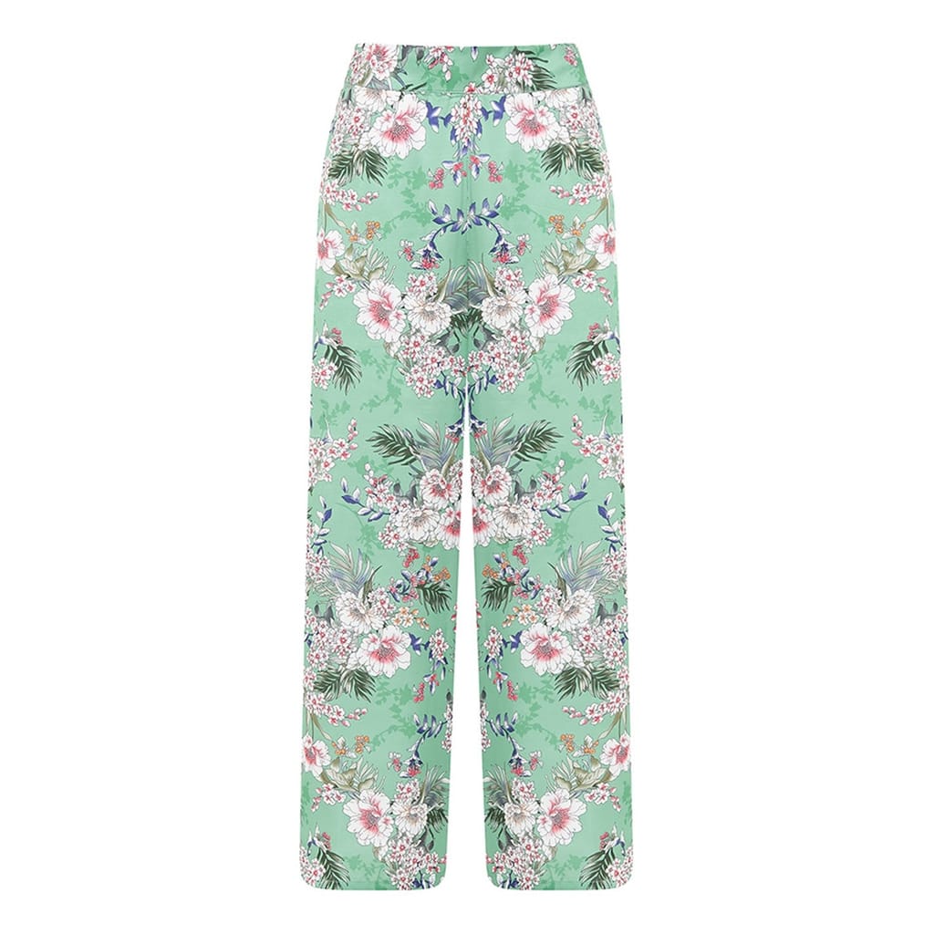 Elevate your wardrobe with Yumi's sage trousers, featuring a striking floral print. These wide-leg pants offer a stylish and comfortable fit, perfect for adding a touch of elegance to any ensemble. -