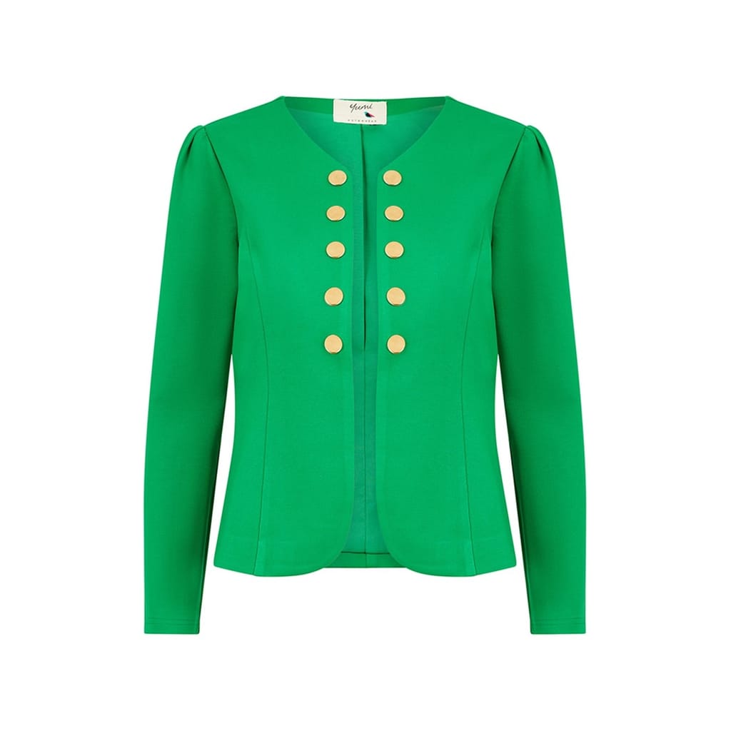 Discover the Yumi blazer jacket, a key piece in our workwear collection. This solid jacket features a classic button closure and puff sleeves, offering a regular fit for a timeless look. Designed as a perfect addition to any professional wardrobe, this blazer combines sophistication with everyday functionality. -