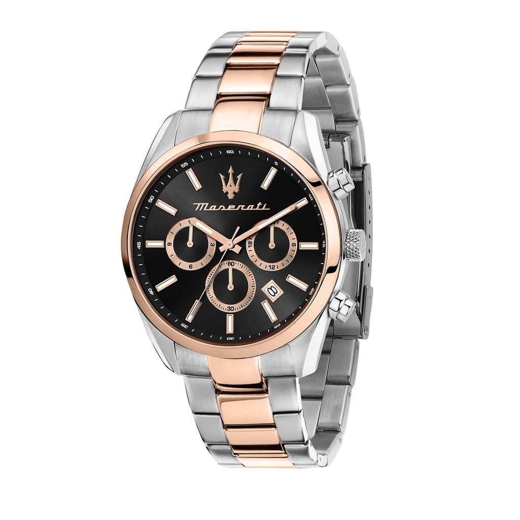 Discover the elegance of Maserati with this wrist watch, featuring a sleek black dial and an analogue display. Crafted with a durable steel bracelet strap, this timepiece is designed for both style and functionality. Water-resistant up to 50m, it is perfect for everyday use. Part of the casual collection, this watch embodies sophistication and practicality. -
