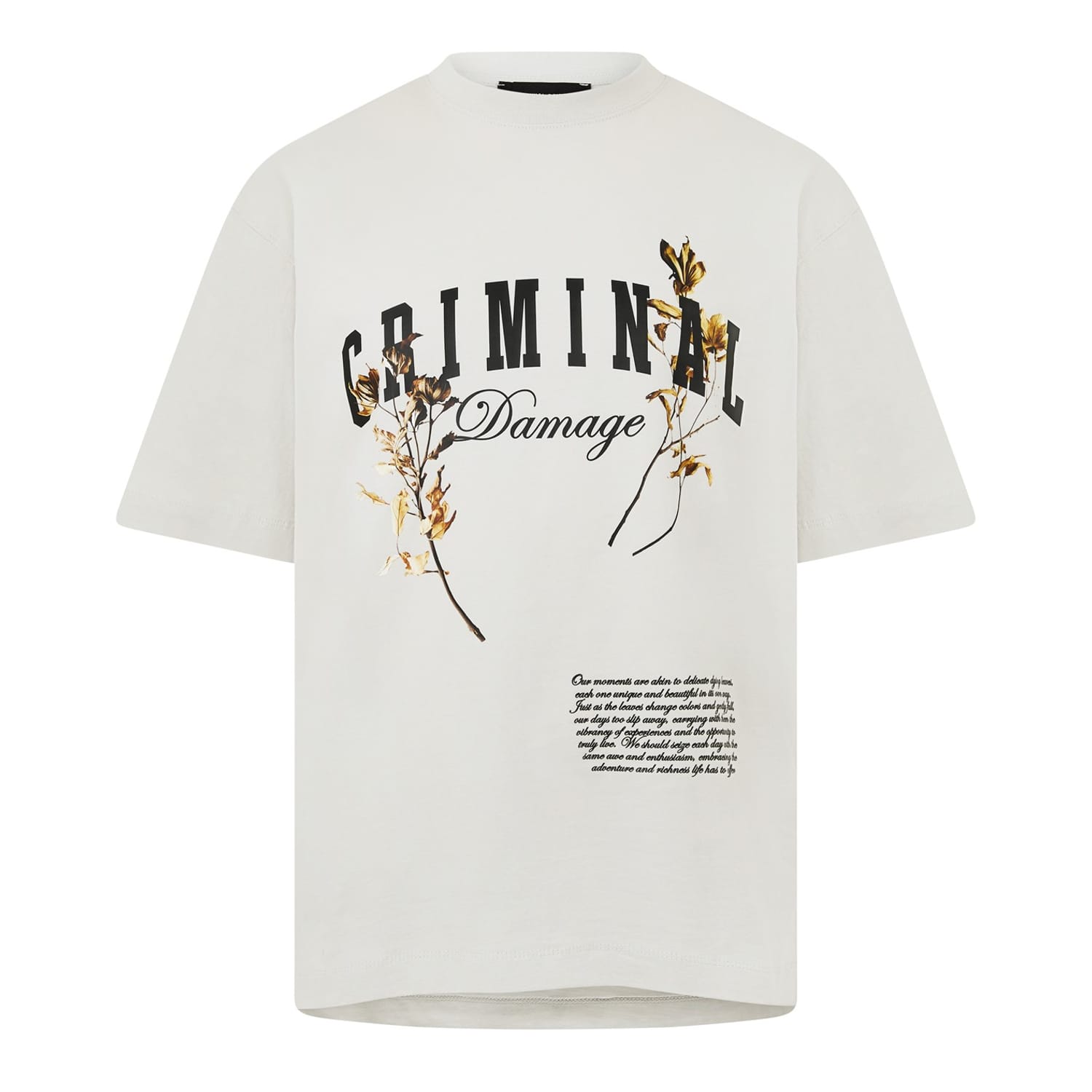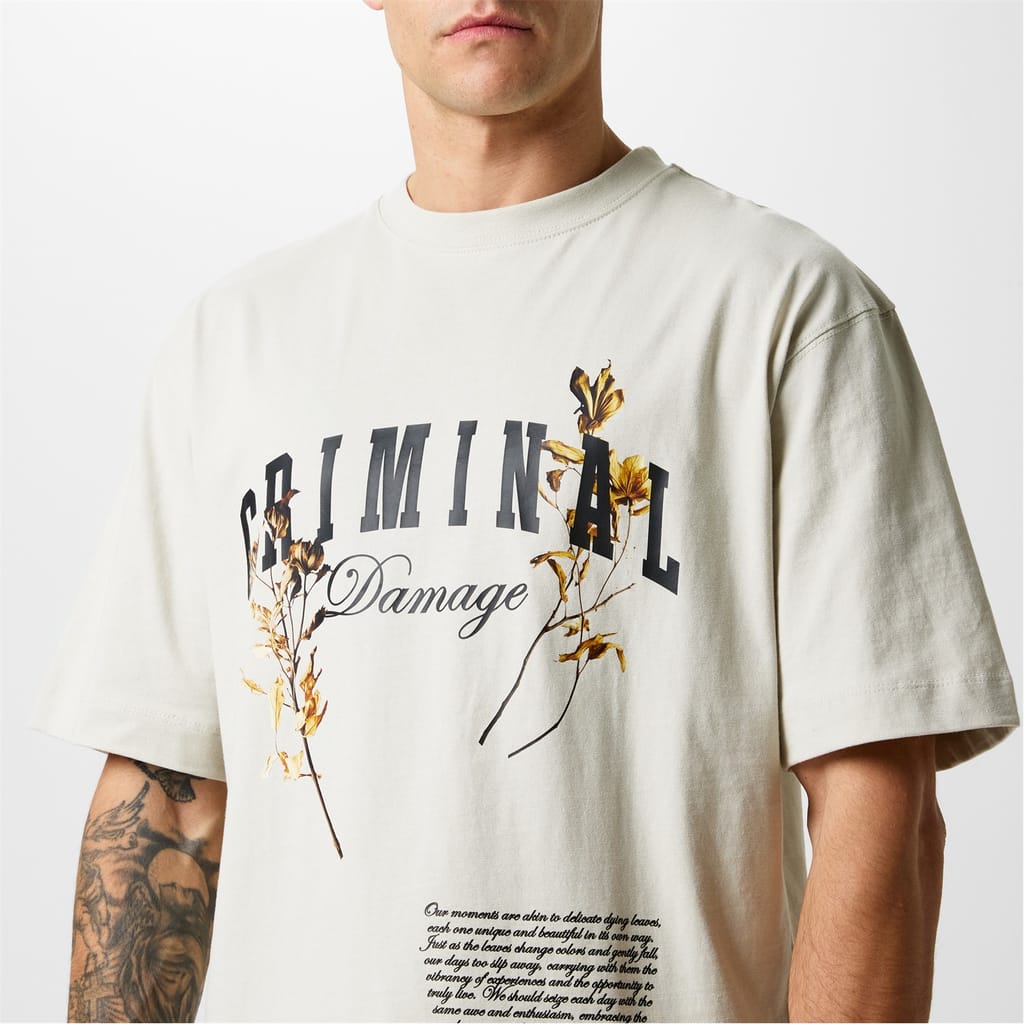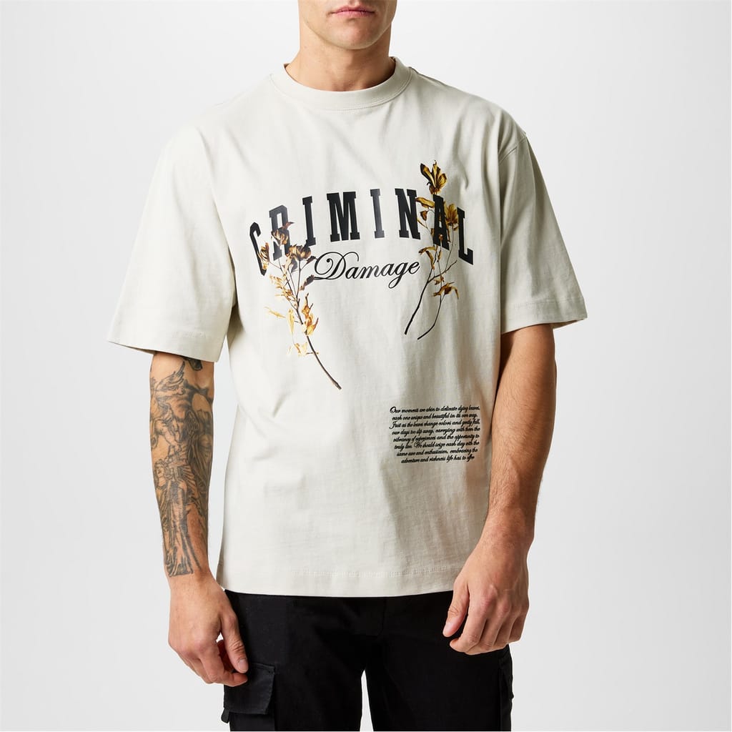 Explore the Criminal Damage T-shirt from the casual collection, offering a regular fit for everyday comfort. This top features a crew neck and short sleeves, adorned with a striking graphic print that adds a unique touch. Perfect for those who appreciate style and ease in equal measure. -
