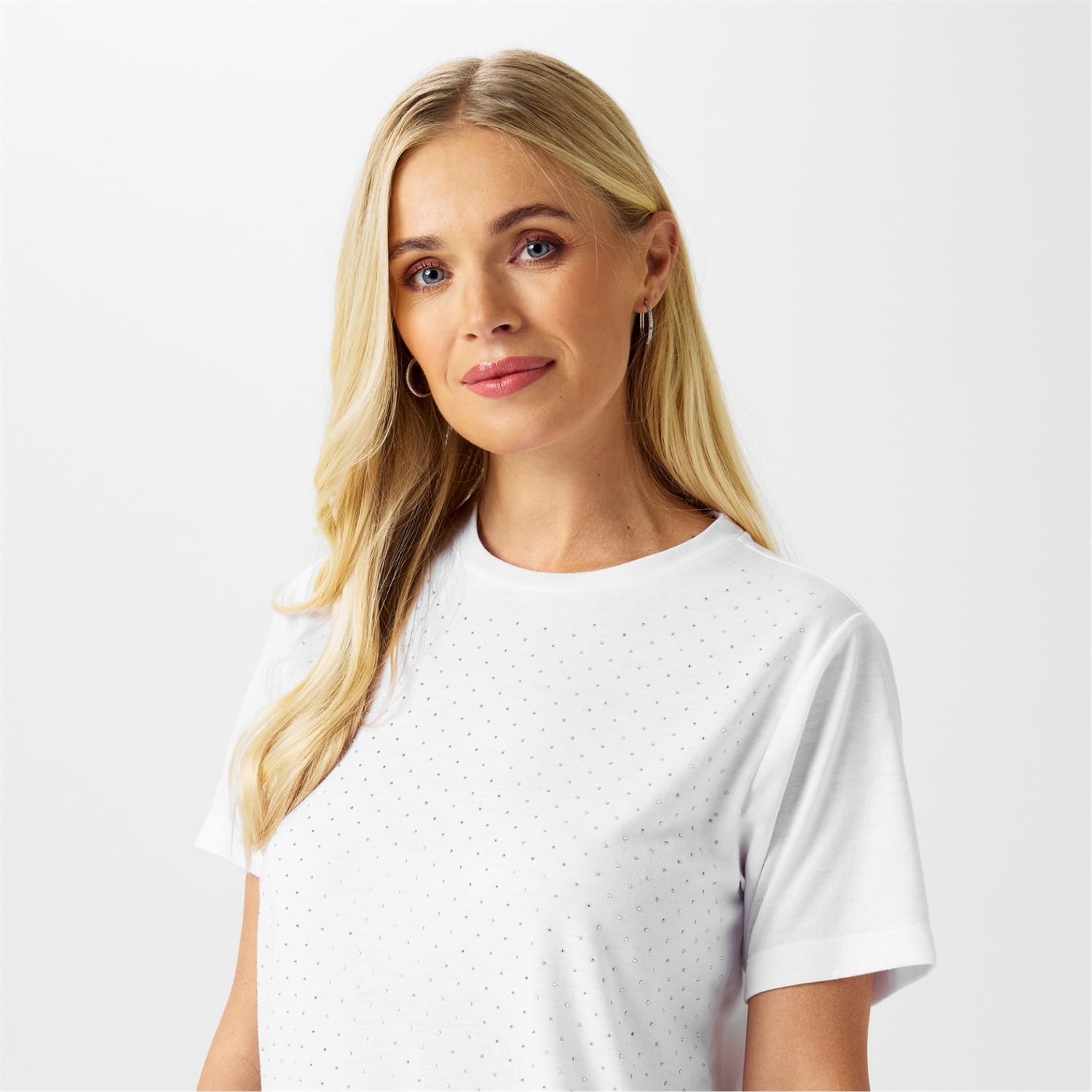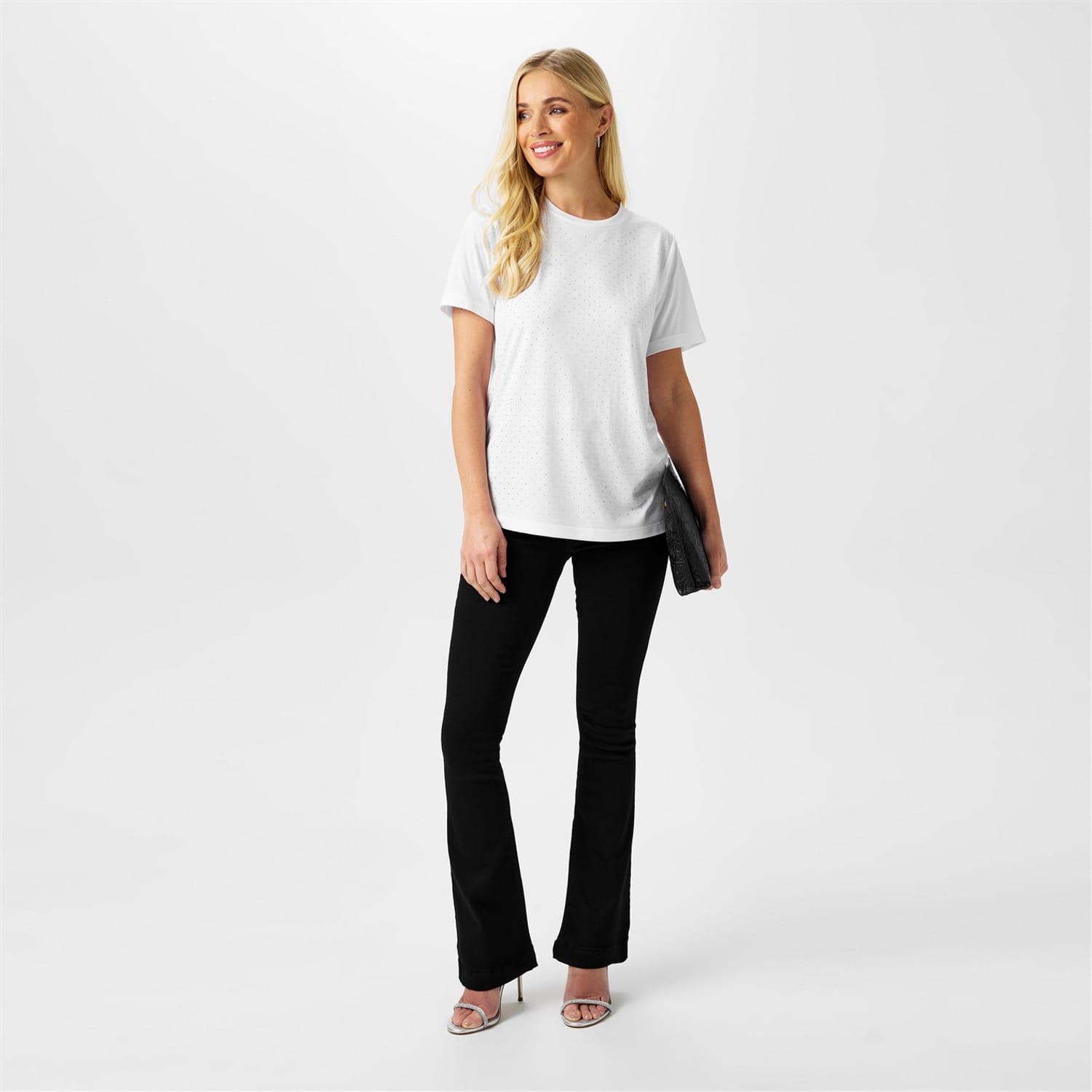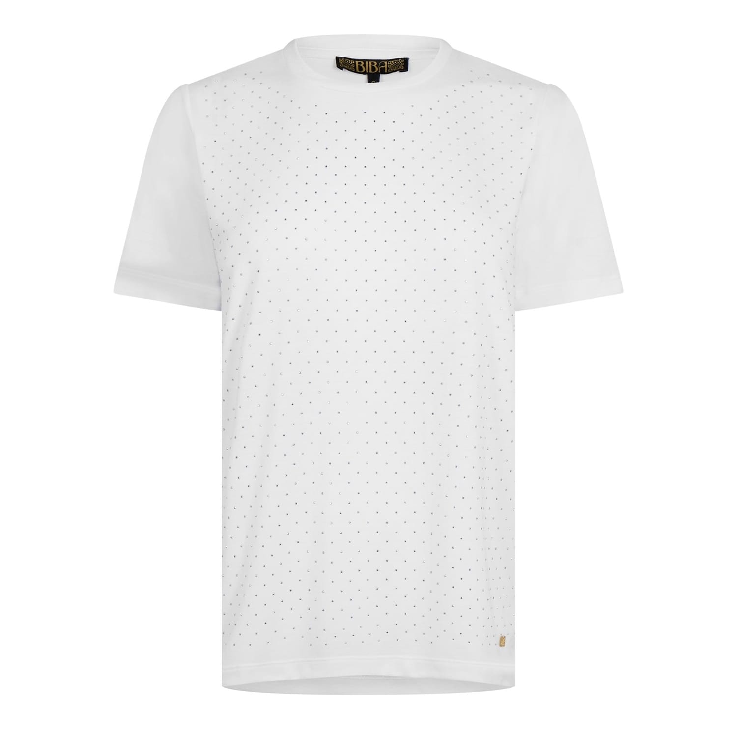 The Biba Diamante T-Shirt is a dazzling addition to your wardrobe, perfect for adding a touch of shimmer and glamour to any outfit. Crafted from soft jersey fabric and adorned with all-over diamante detailing, this short-sleeve t-shirt is designed to catch the light and make you shine. Whether you're dressing up for a night out or keeping it casual, this t-shirt is the ultimate versatile piece.