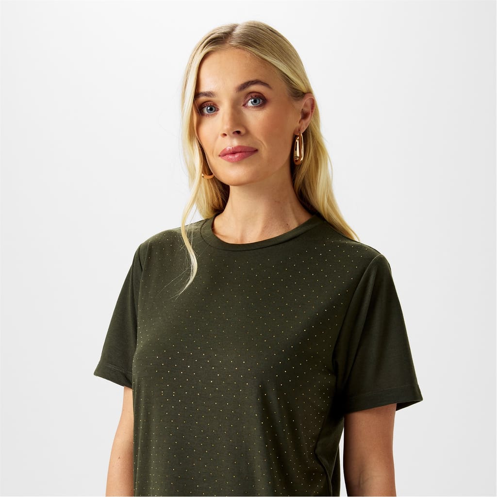 The Biba Diamante T-Shirt is a dazzling addition to your wardrobe, perfect for adding a touch of shimmer and glamour to any outfit. Crafted from soft jersey fabric and adorned with all-over diamante detailing, this short-sleeve t-shirt is designed to catch the light and make you shine. Whether you're dressing up for a night out or keeping it casual, this t-shirt is the ultimate versatile piece.