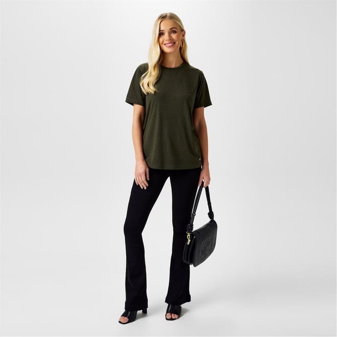 - Pair the Biba Diamante T-Shirt with Biba PU trousers and heels to create a head-turning, glamorous ensemble that's perfect for evening events. For a more laid-back yet still fashionable look, style the t-shirt with Biba ponte leggings and your favorite flats or trainers. -