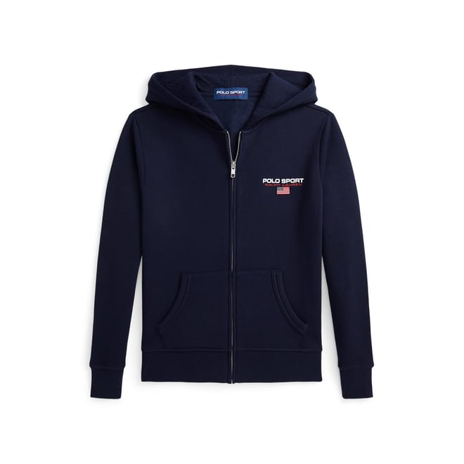 This Junior Fleece Full-Zip Hoodie from Polo Ralph Lauren is a versatile essential perfect for layering on cooler days. Featuring a full-zip fastening and rib trims, it offers a snug and comfortable fit. Ideal for casual outings, sports practice, or relaxed weekends, this hoodie keeps your little one warm and stylish wherever they go.