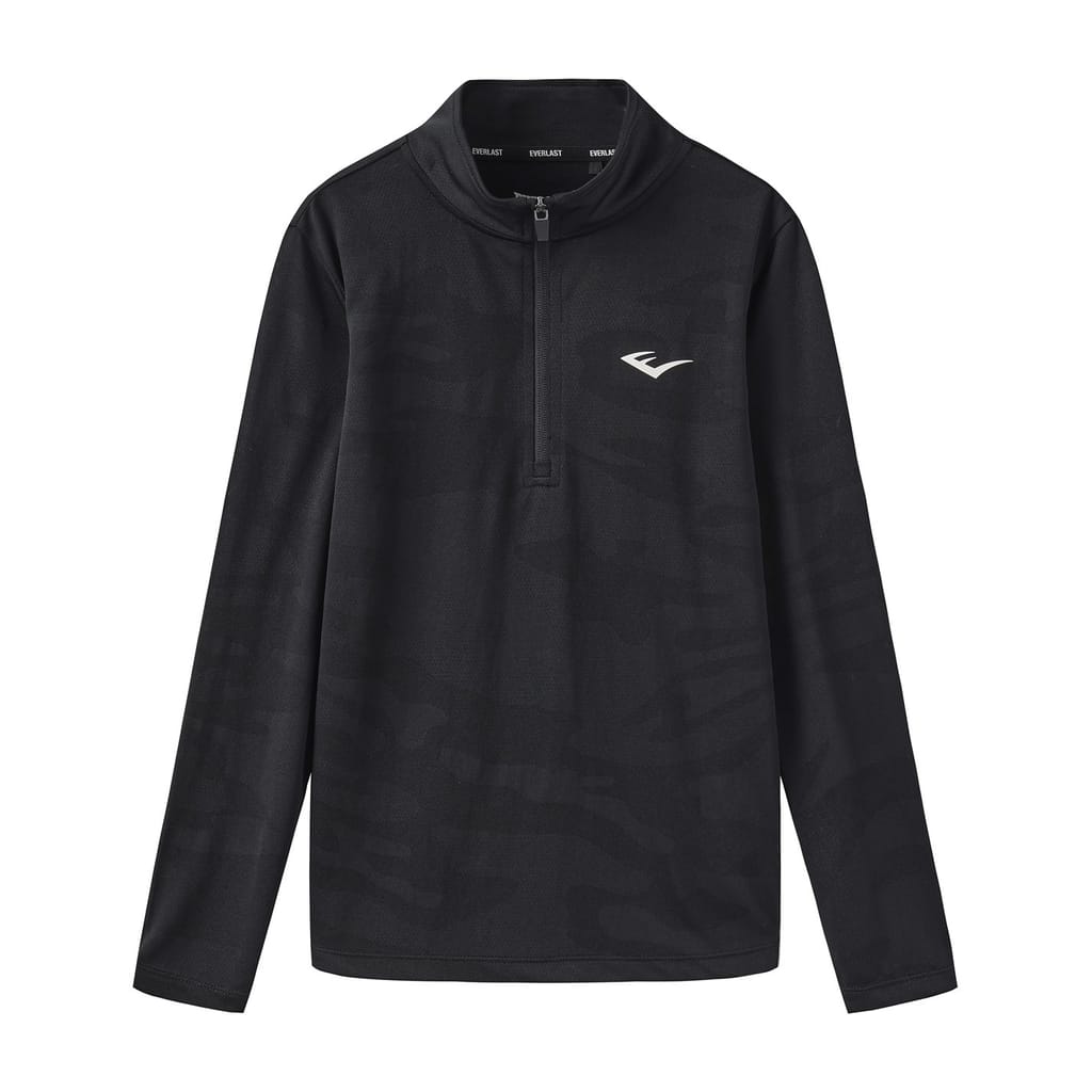This Everlast top is designed for juniors, featuring a quarter zipper closure and a zip neck. Crafted for performance, it offers a regular fit with long sleeves. The solid pattern and logo embellishment add a sleek touch, making it a versatile piece for activewear collections. -